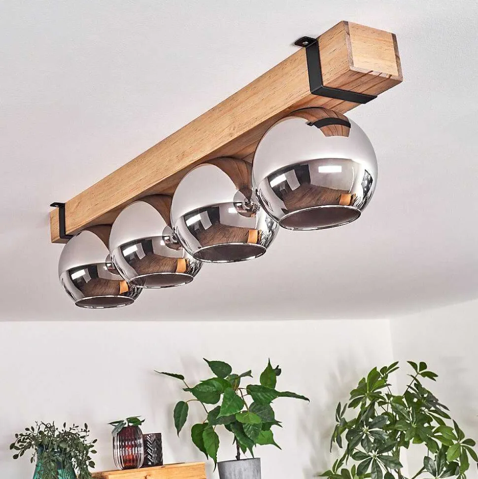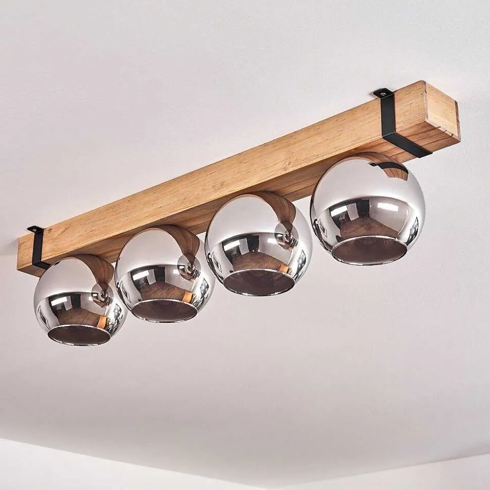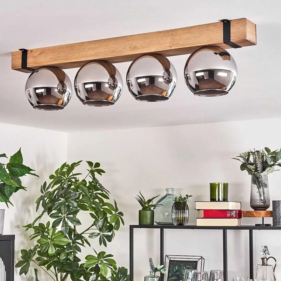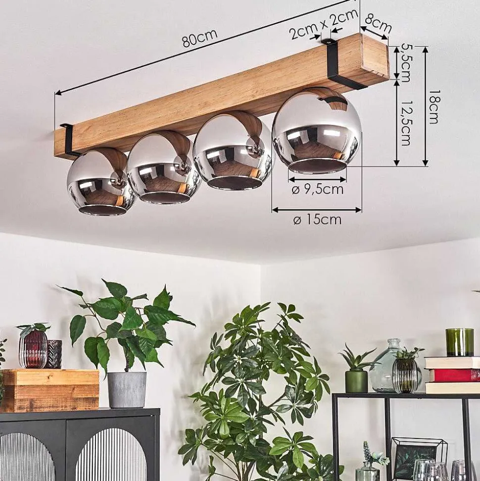 Plafonnier Salmi Led Brun, Couleur Bois, Noir, 1 Lumiere, Telecommandes