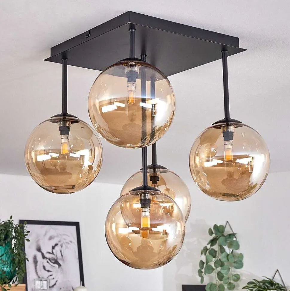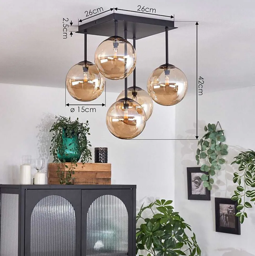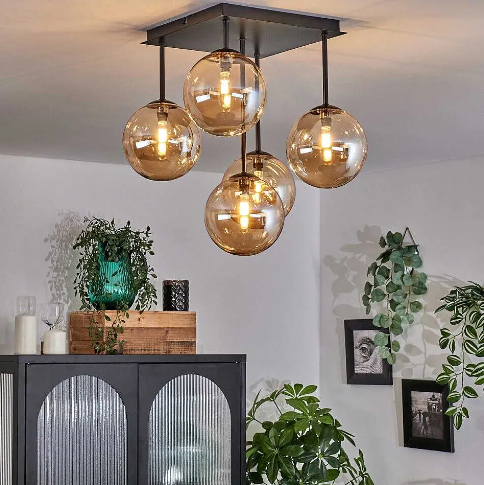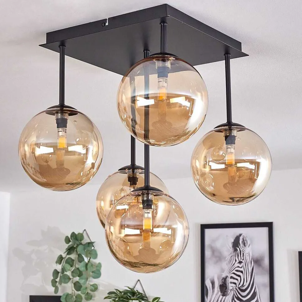 Plafonnier Salmi Led Brun, Couleur Bois, Noir, 1 Lumiere, Telecommandes