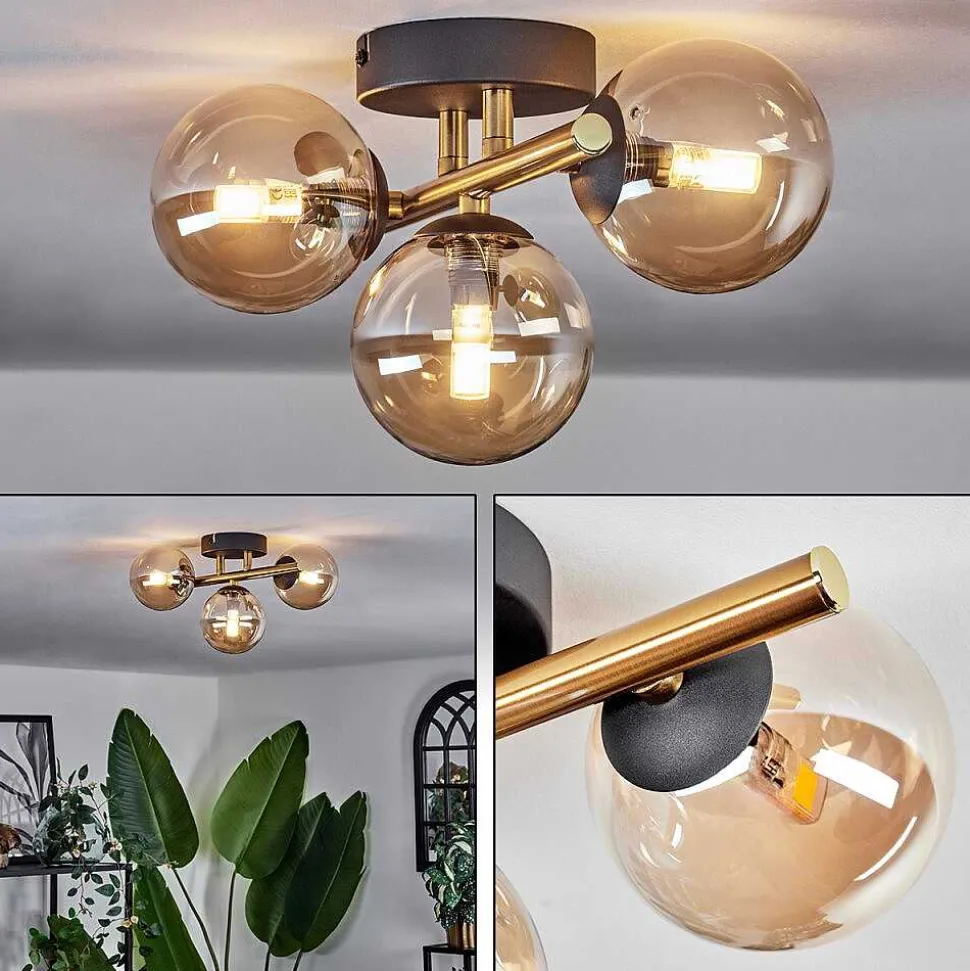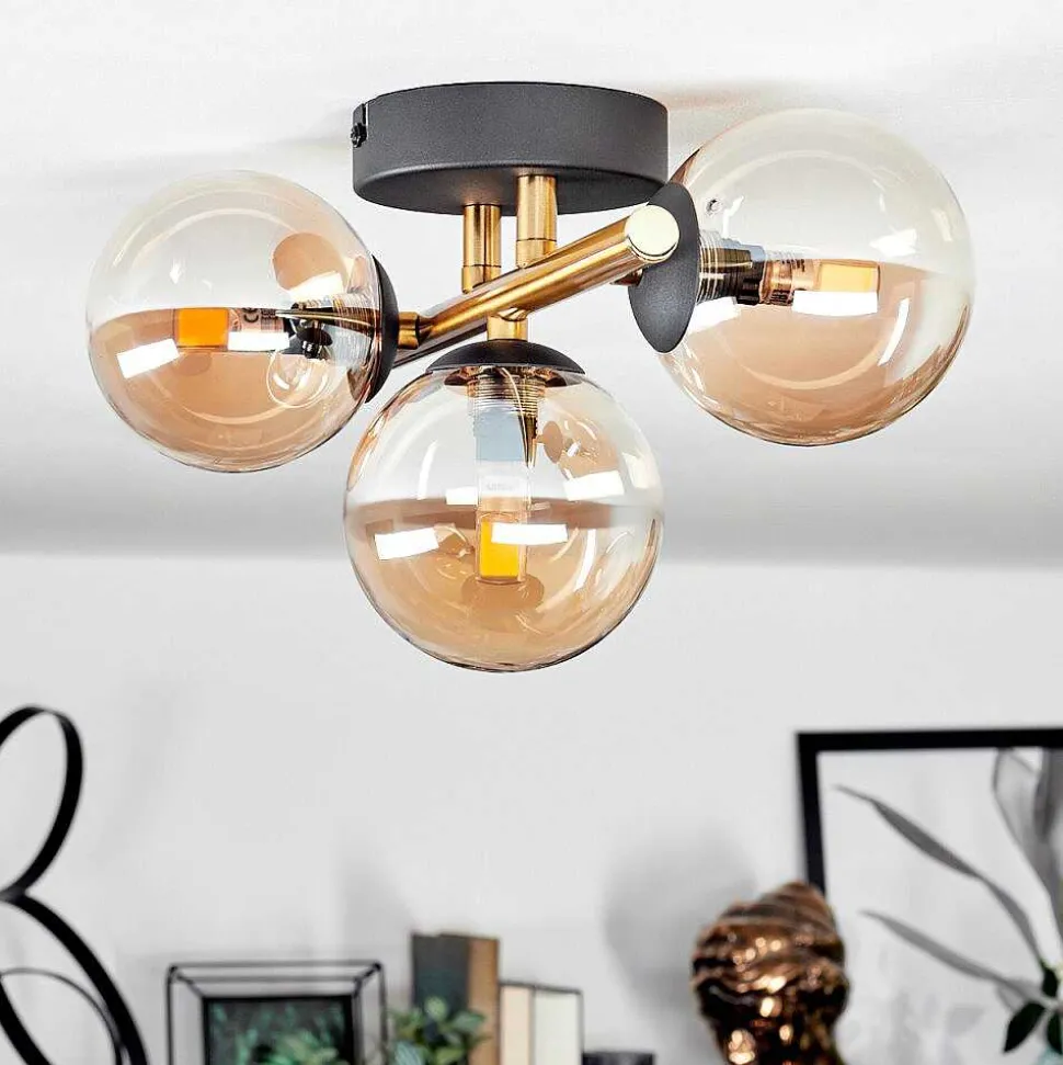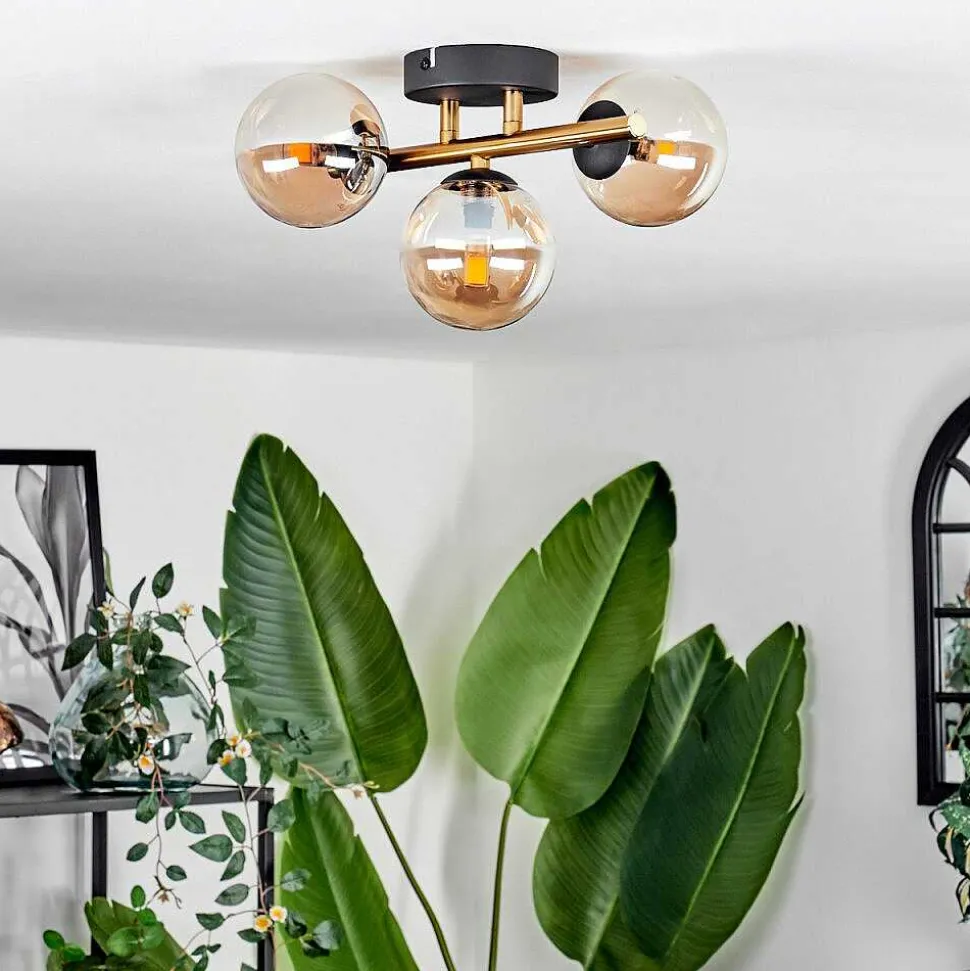 Plafonnier Salmi Led Brun, Couleur Bois, Noir, 1 Lumiere, Telecommandes