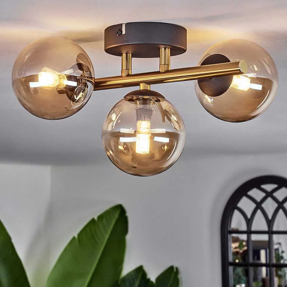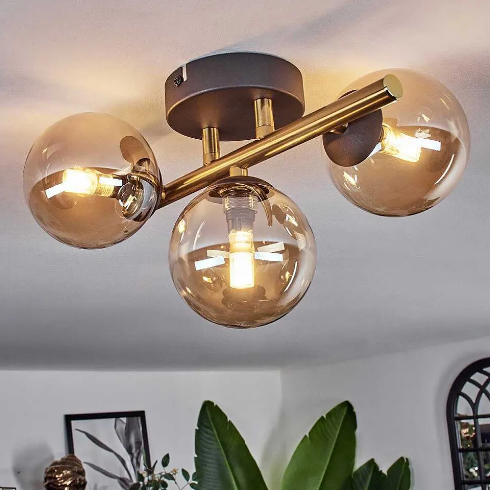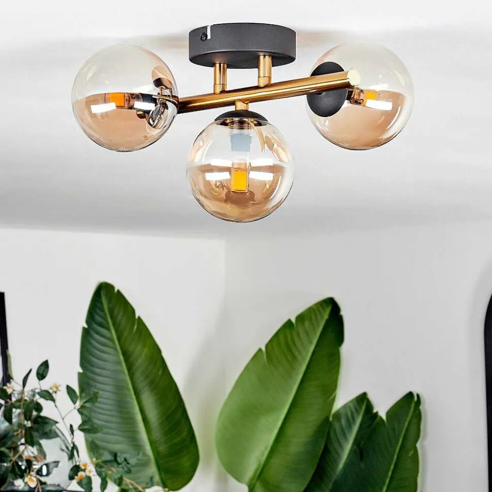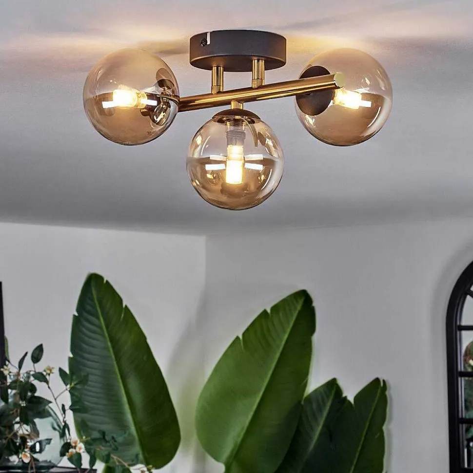Plafonnier Salmi Led Brun, Couleur Bois, Noir, 1 Lumiere, Telecommandes