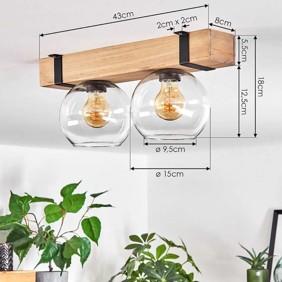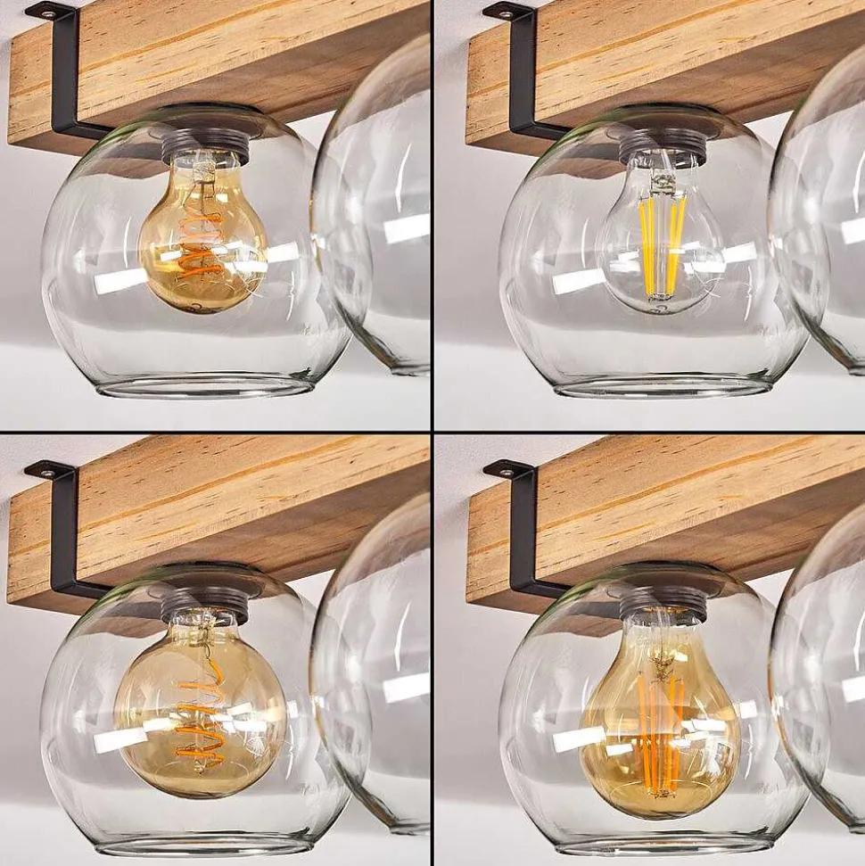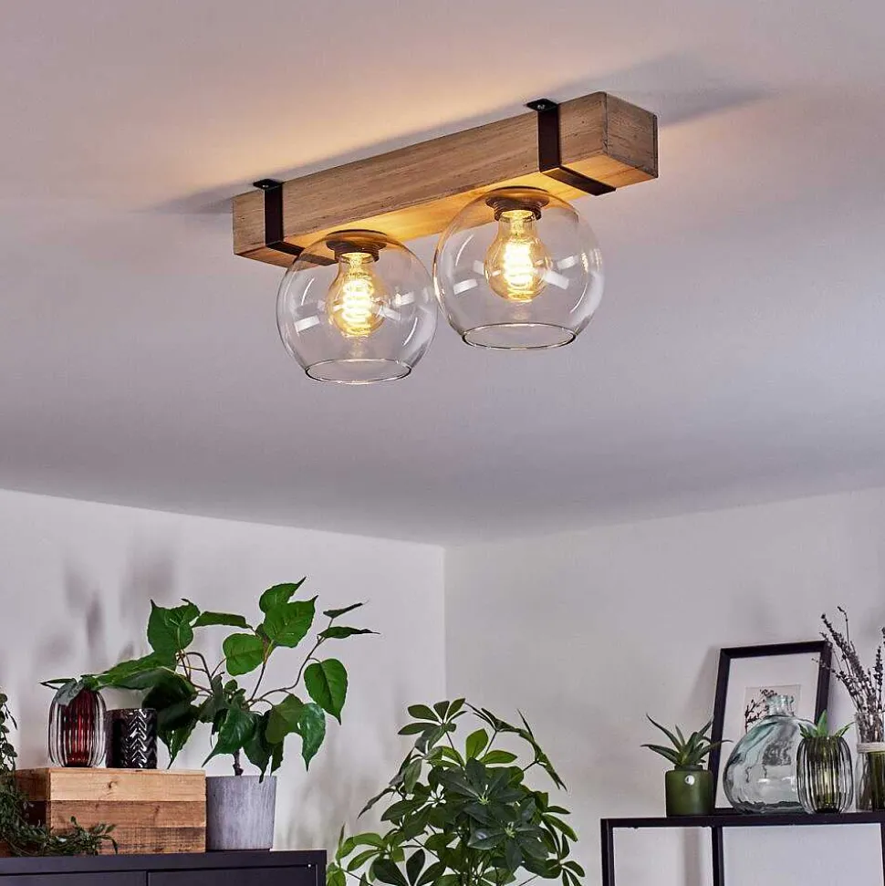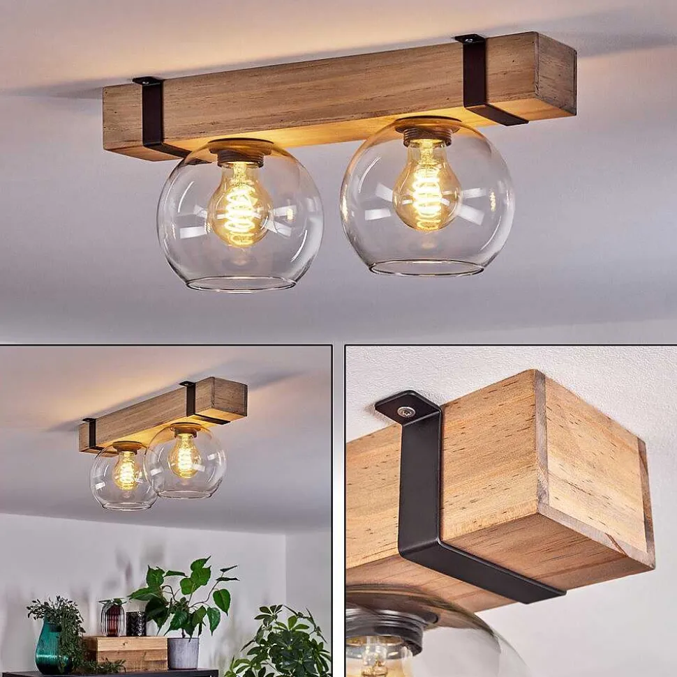 Plafonnier Salmi Led Brun, Couleur Bois, Noir, 1 Lumiere, Telecommandes