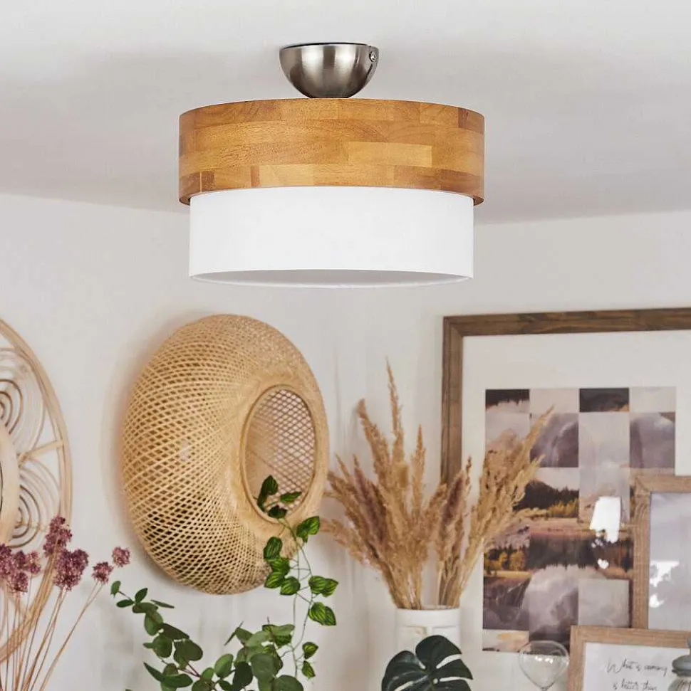 Plafonnier Vrolle Bois Clair, Nickel Mat, 2 Lumieres