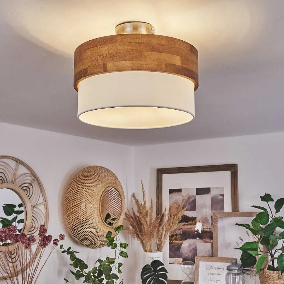Plafonnier Salmi Led Brun, Couleur Bois, Noir, 1 Lumiere, Telecommandes