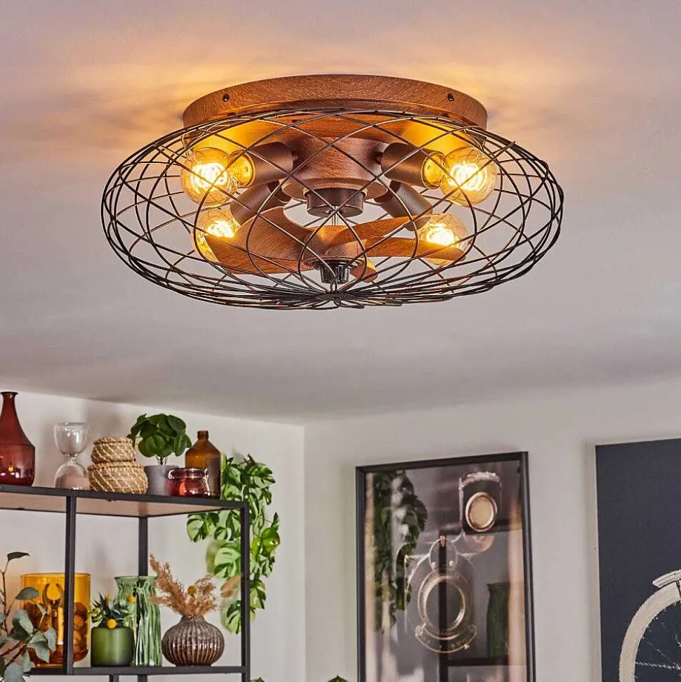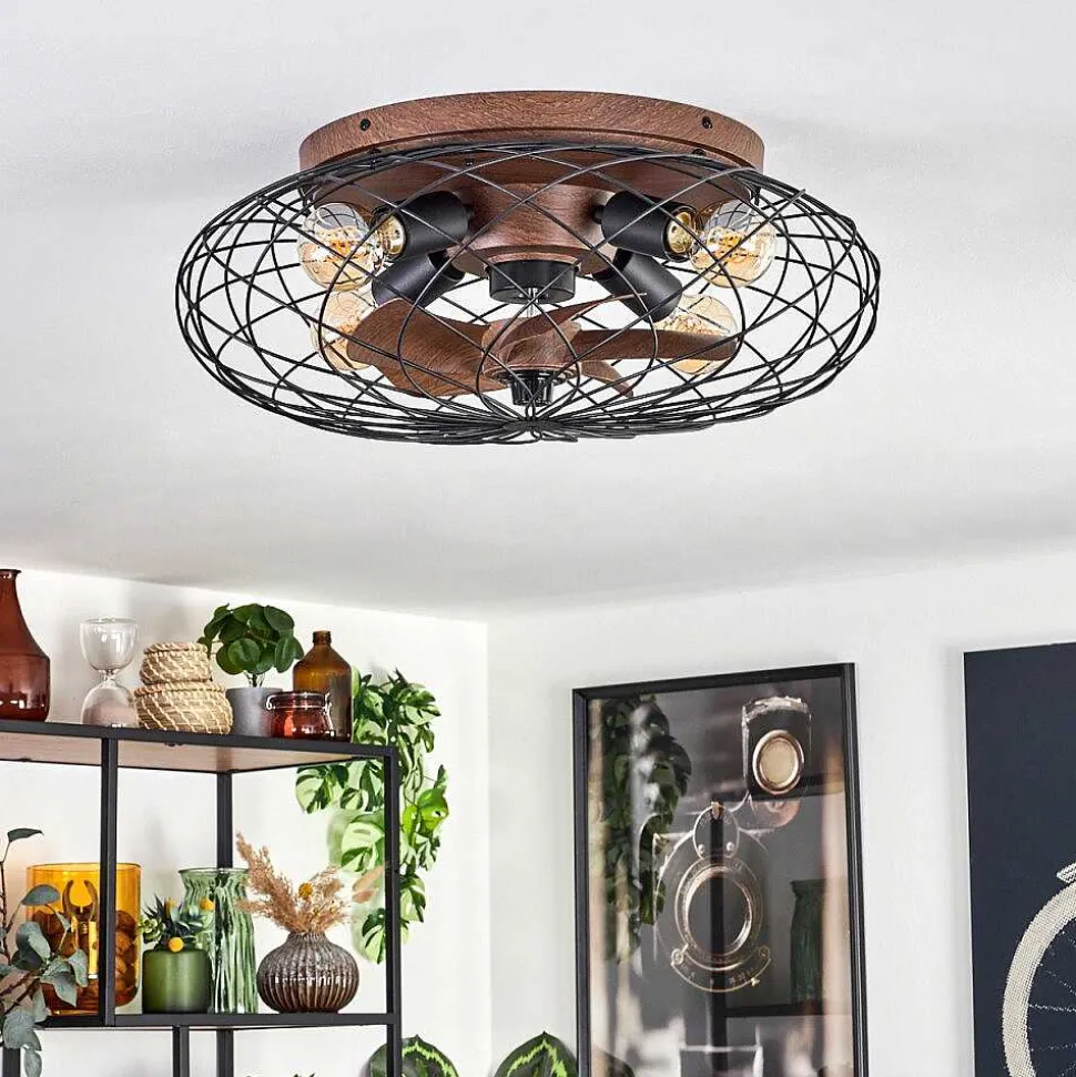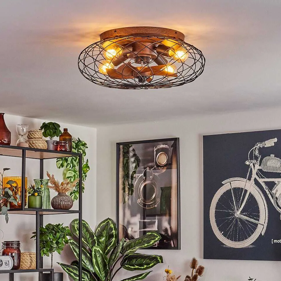 Plafonnier Wemude Brun, Noir, 4 Lumieres, Telecommandes