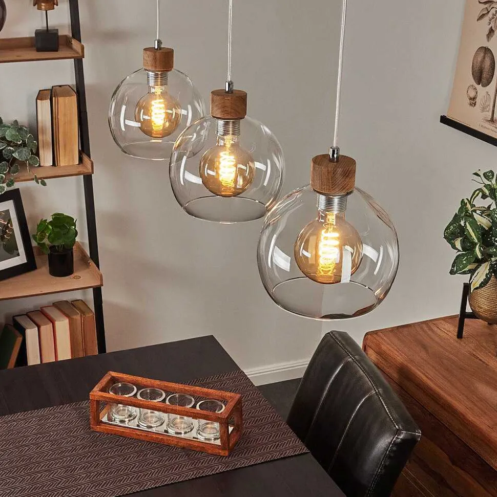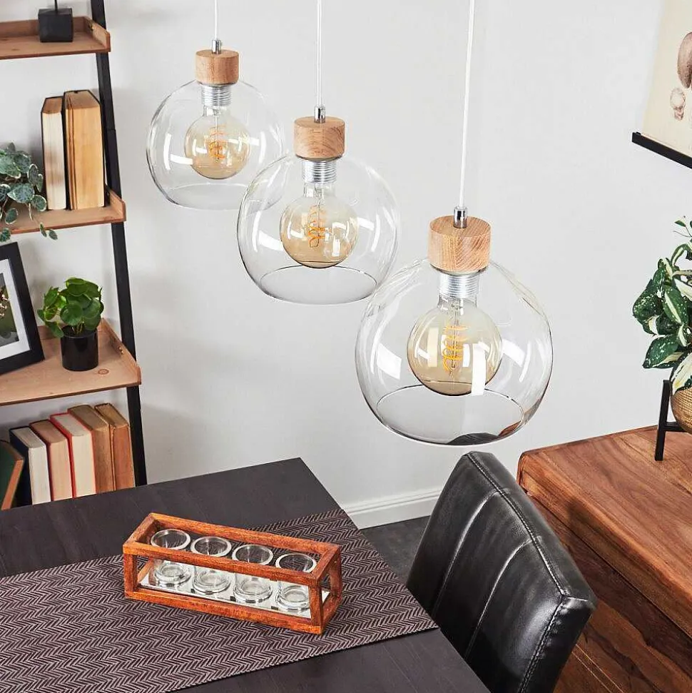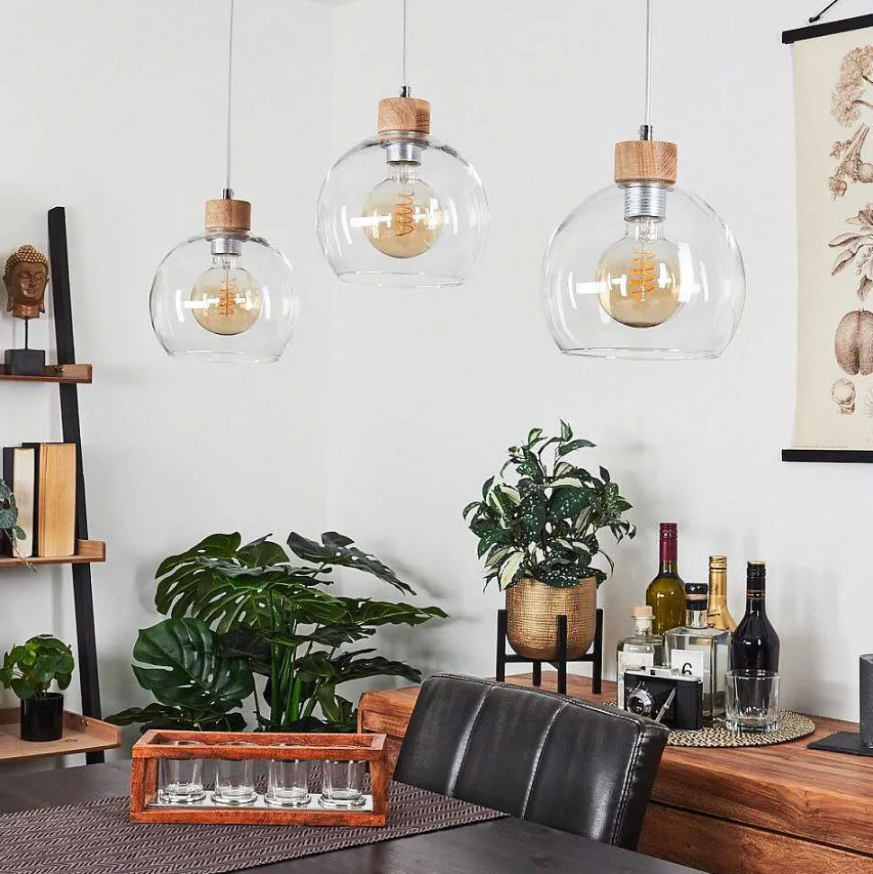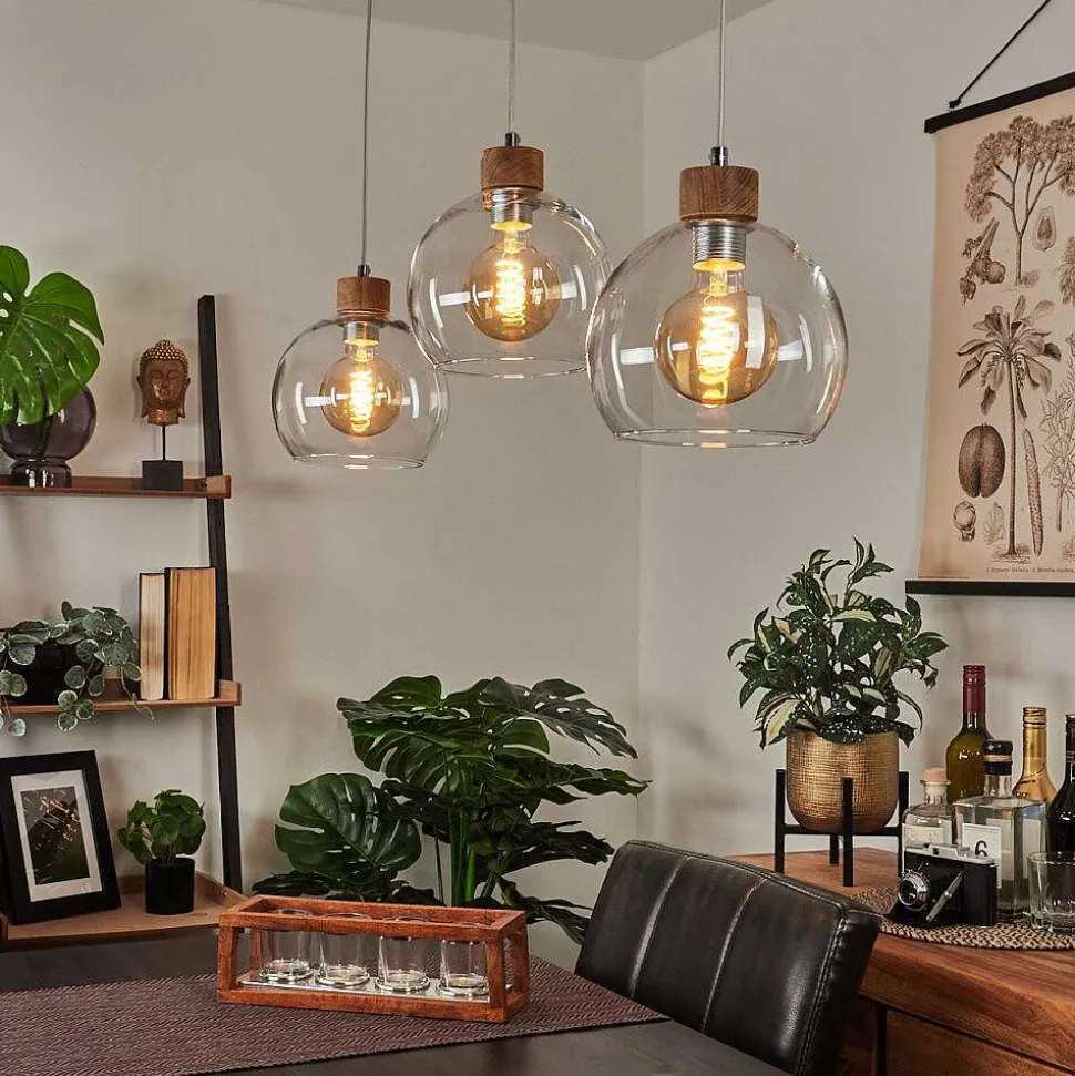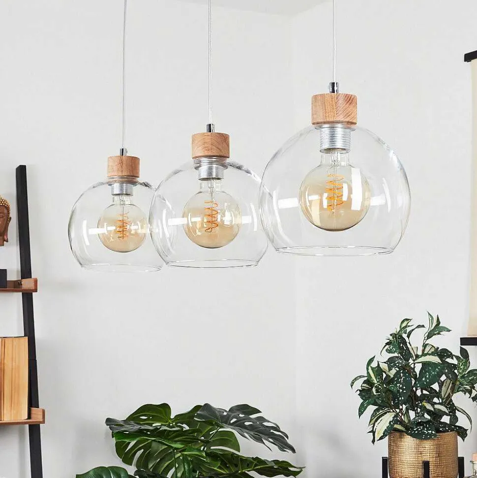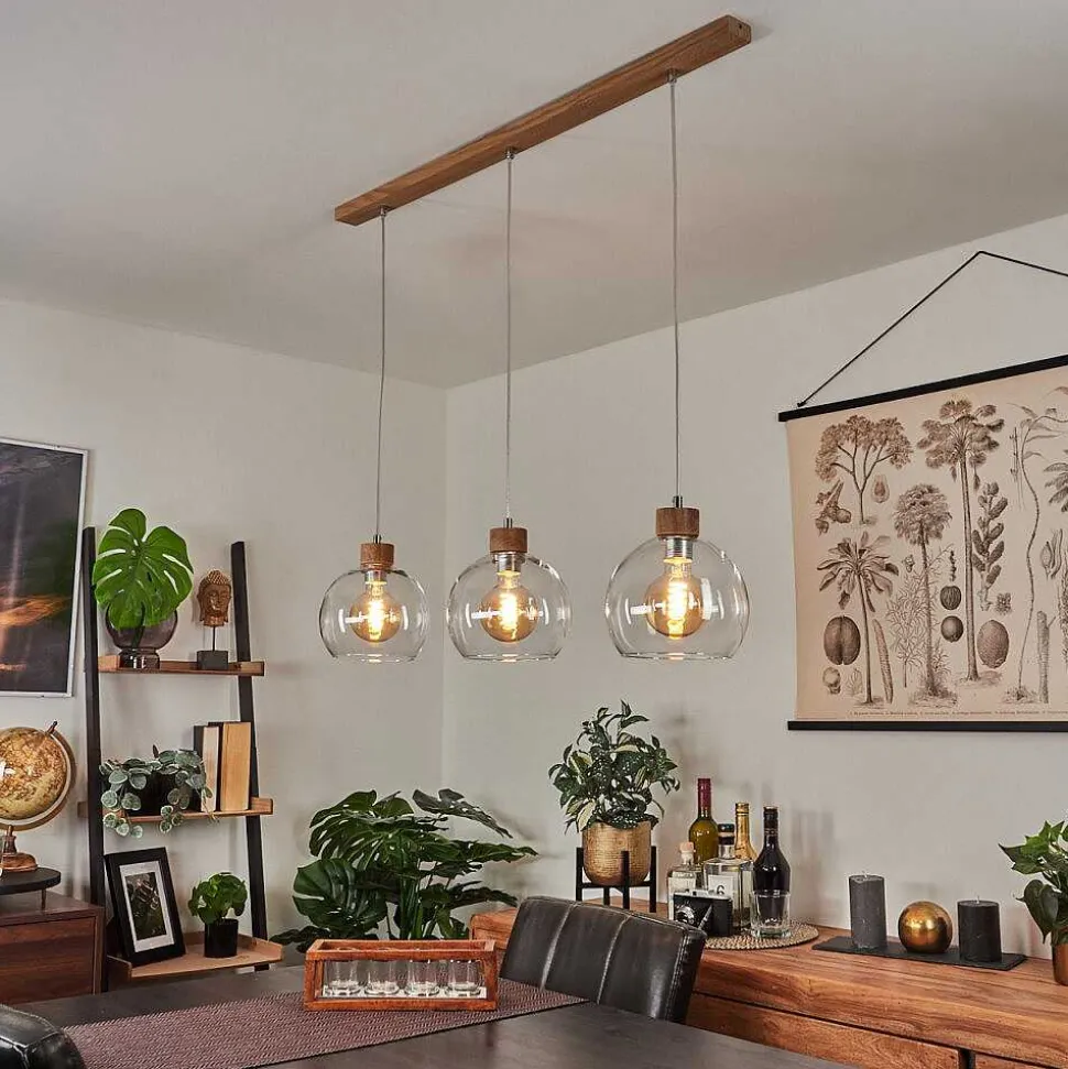 Plafonnier Salmi Led Brun, Couleur Bois, Noir, 1 Lumiere, Telecommandes