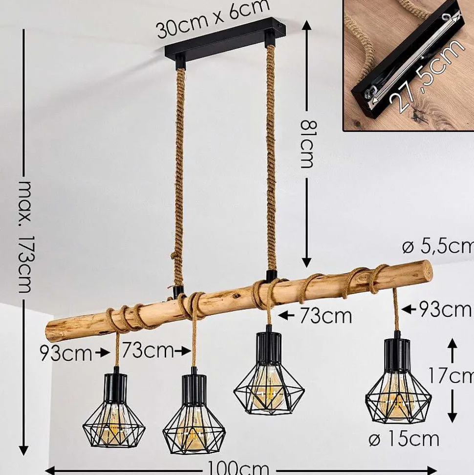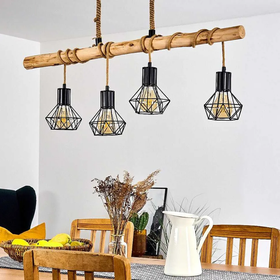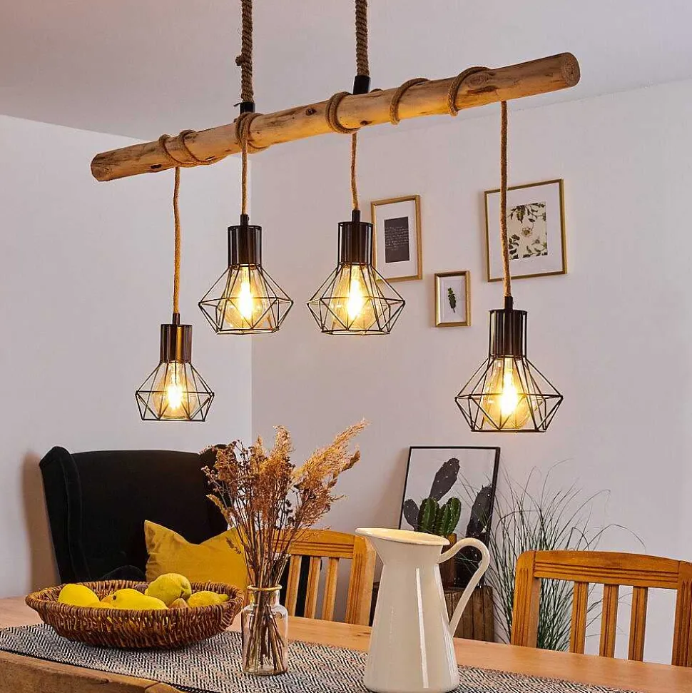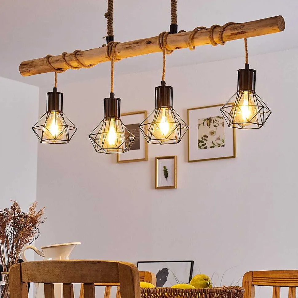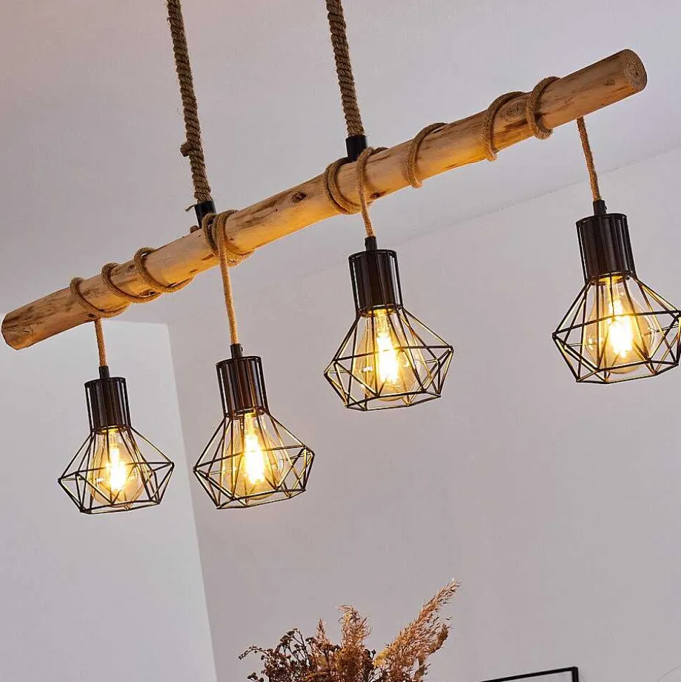 Suspension Bardhaman Brun, Noir, 4 Lumieres