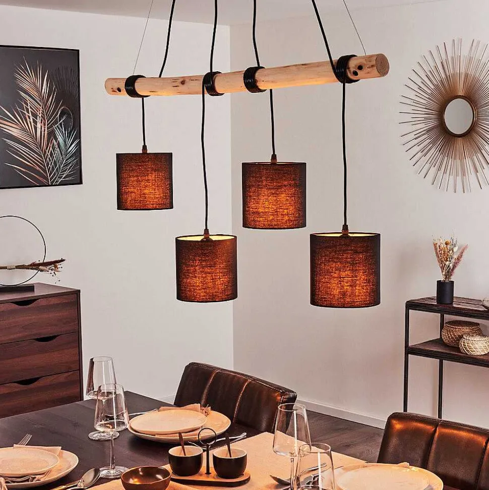 Suspension Betsele Bois Clair, Noir, 4 Lumieres