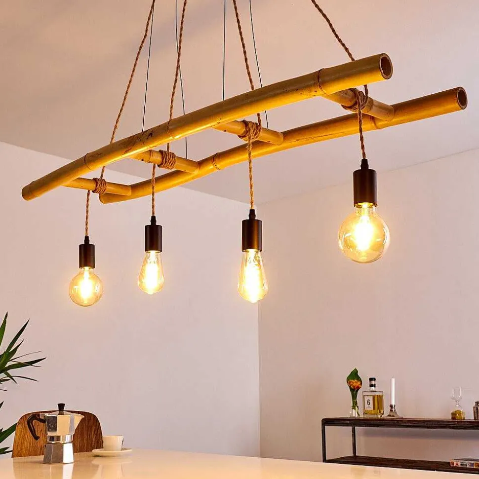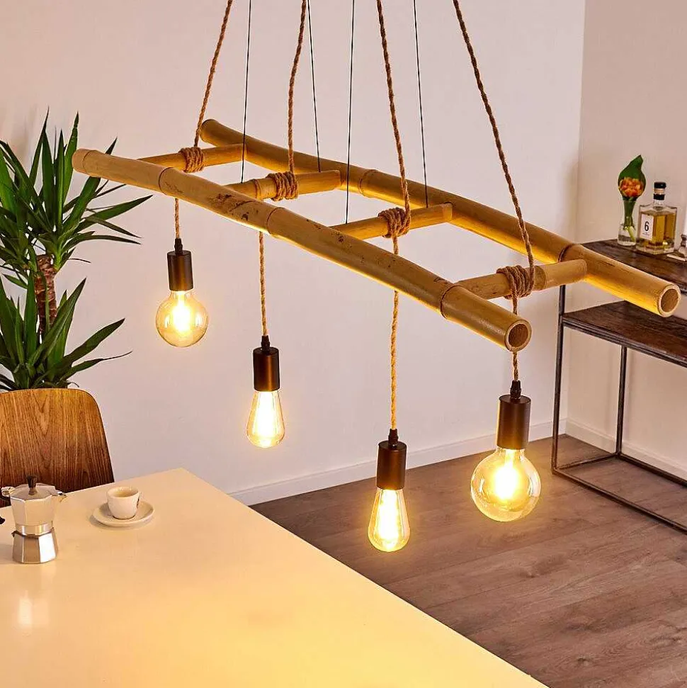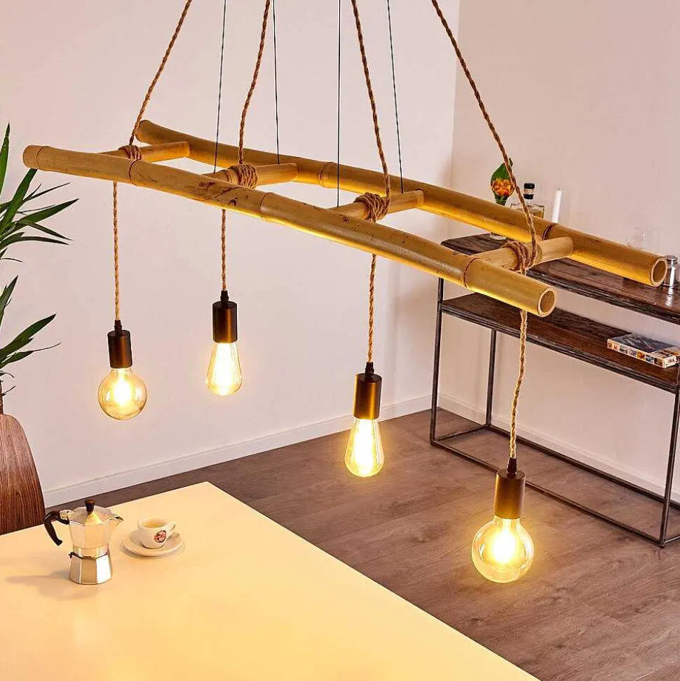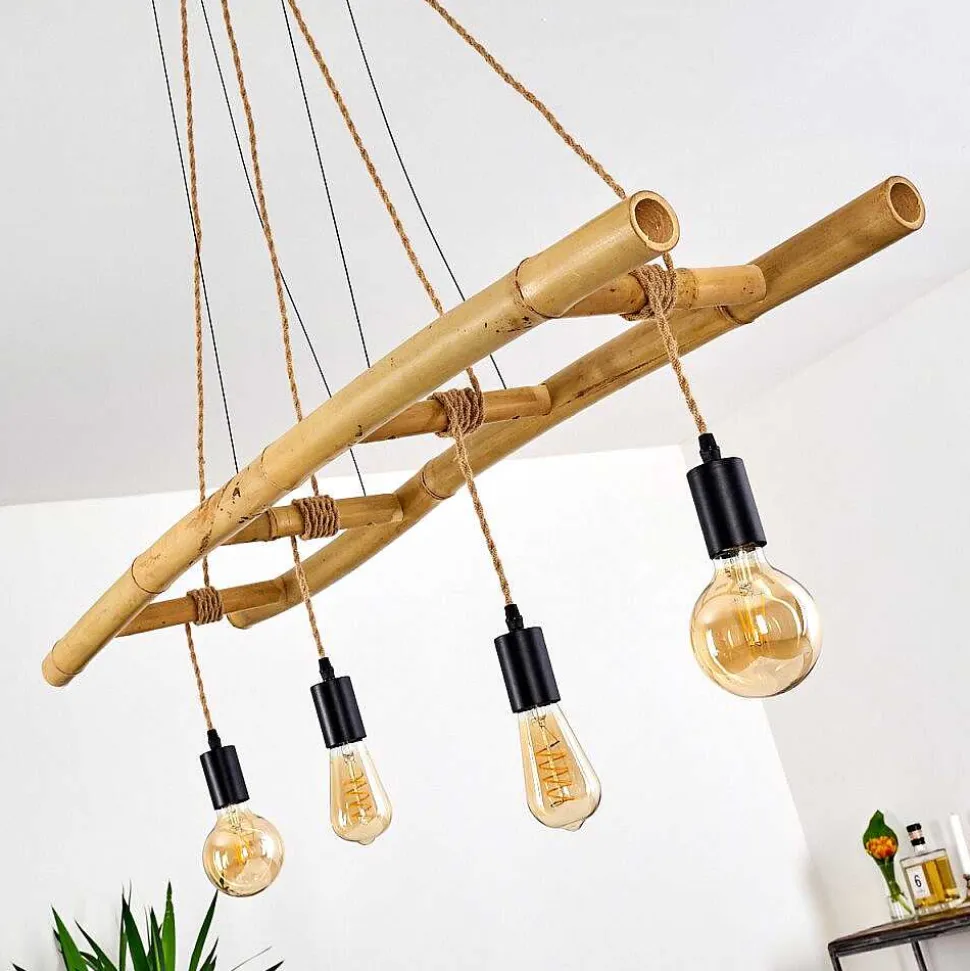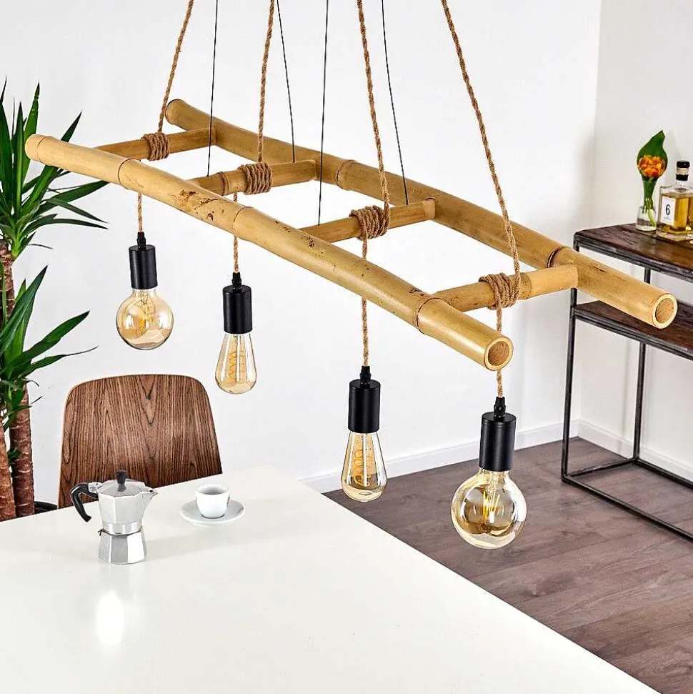 Plafonnier Salmi Led Brun, Couleur Bois, Noir, 1 Lumiere, Telecommandes