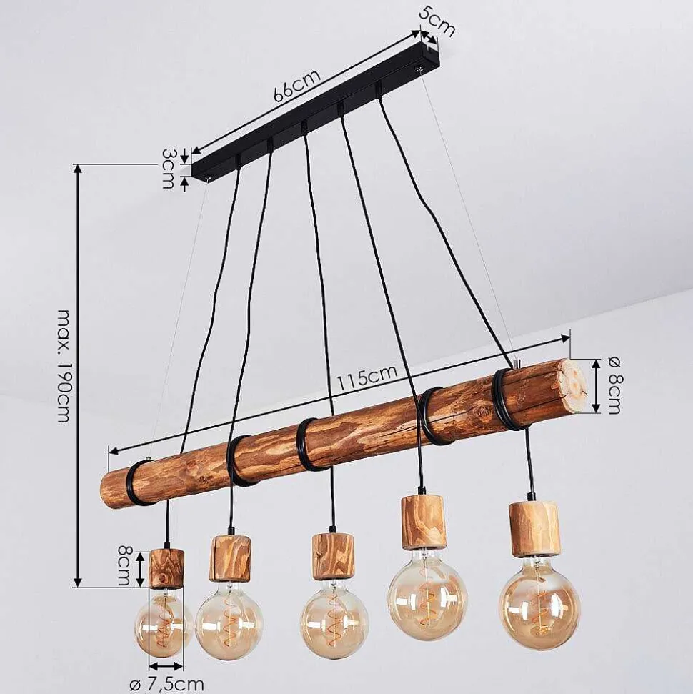 Suspension Canedo Brun, Noir, 5 Lumieres