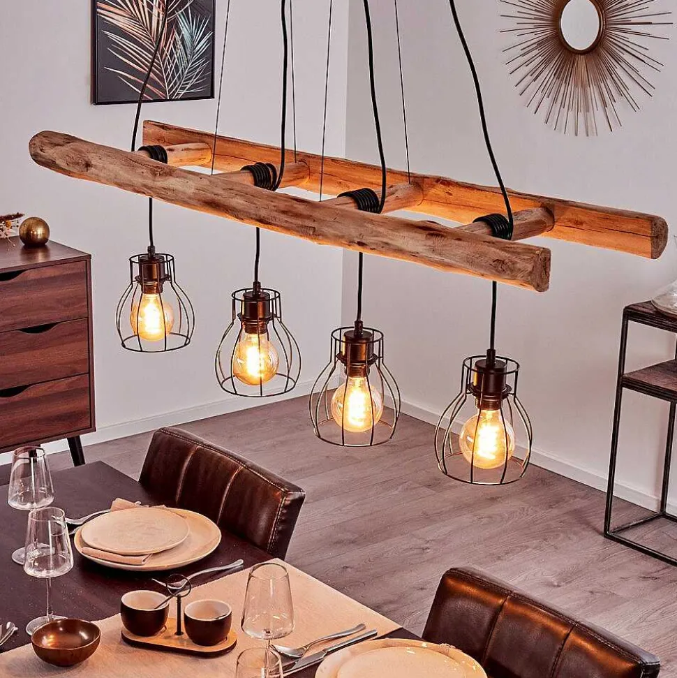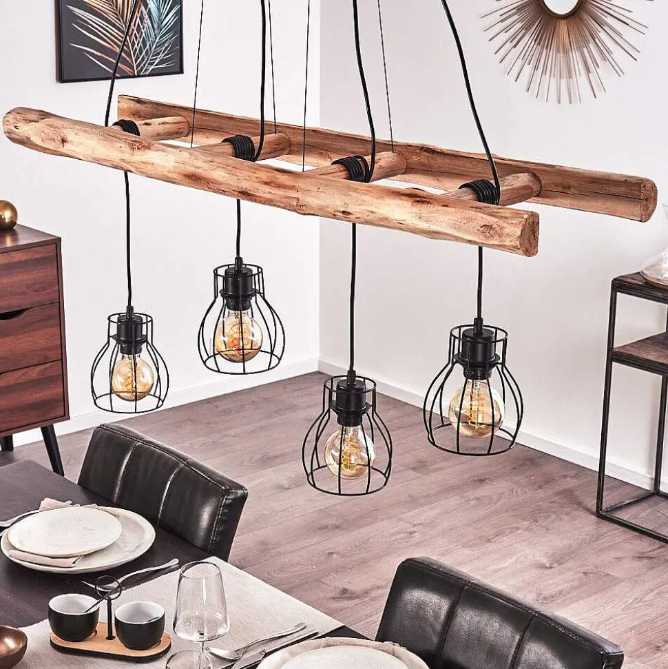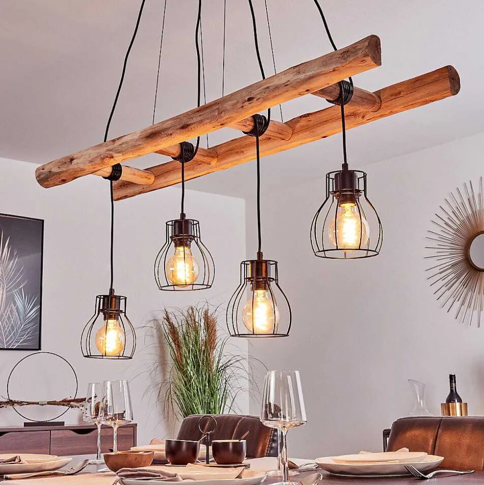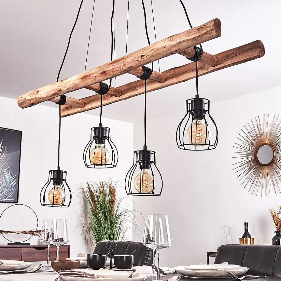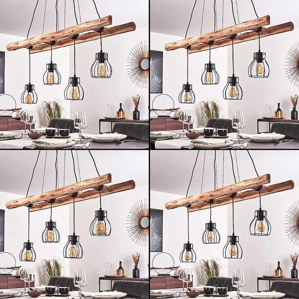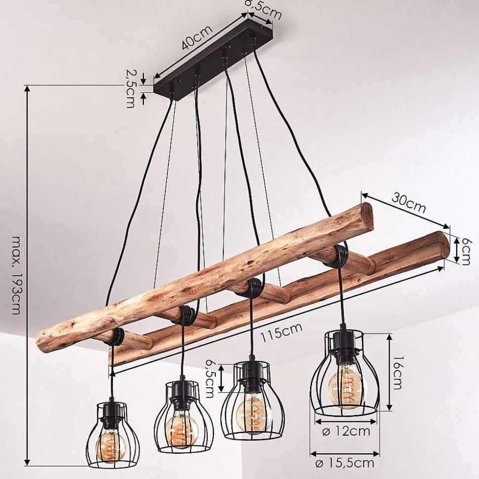 Plafonnier Salmi Led Brun, Couleur Bois, Noir, 1 Lumiere, Telecommandes
