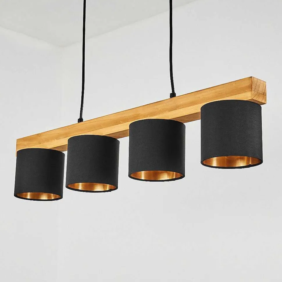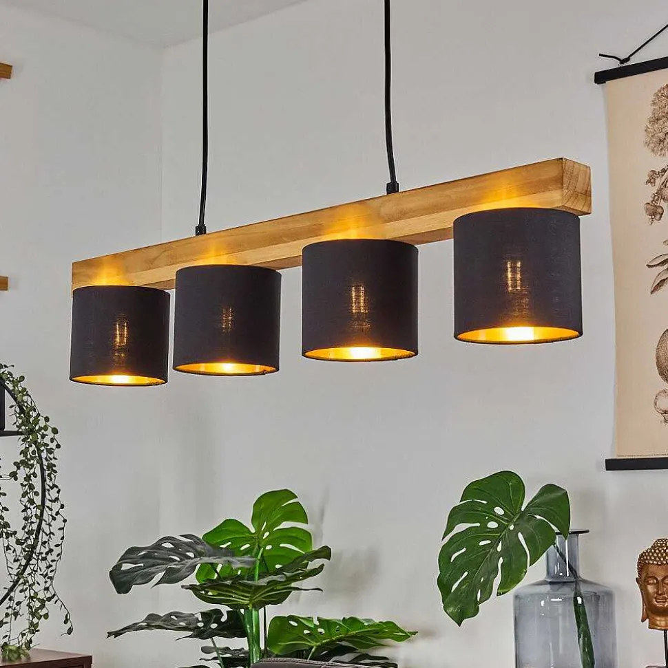 Suspension Malimea Ecru, Noir, 4 Lumieres