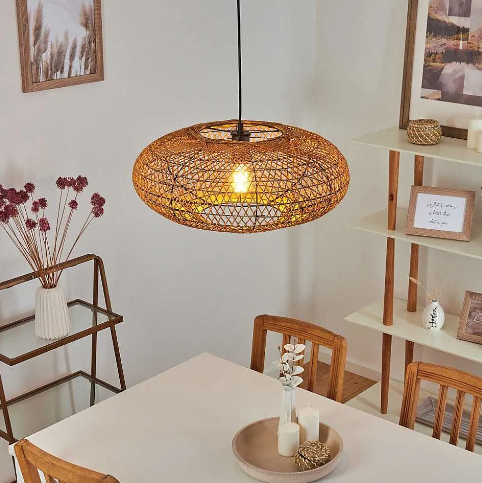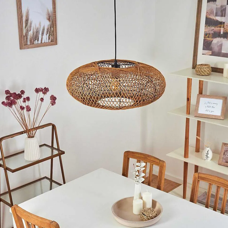 Plafonnier Salmi Led Brun, Couleur Bois, Noir, 1 Lumiere, Telecommandes