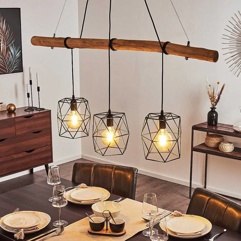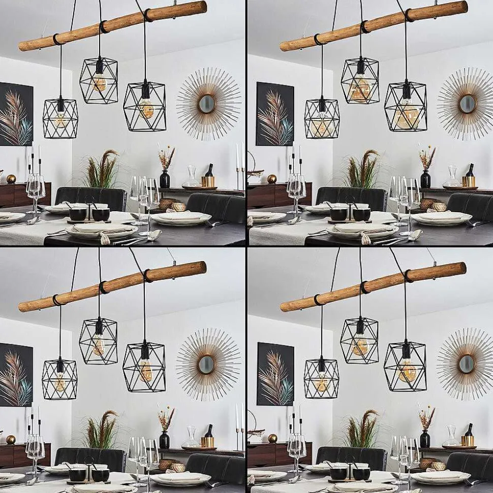 Plafonnier Salmi Led Brun, Couleur Bois, Noir, 1 Lumiere, Telecommandes