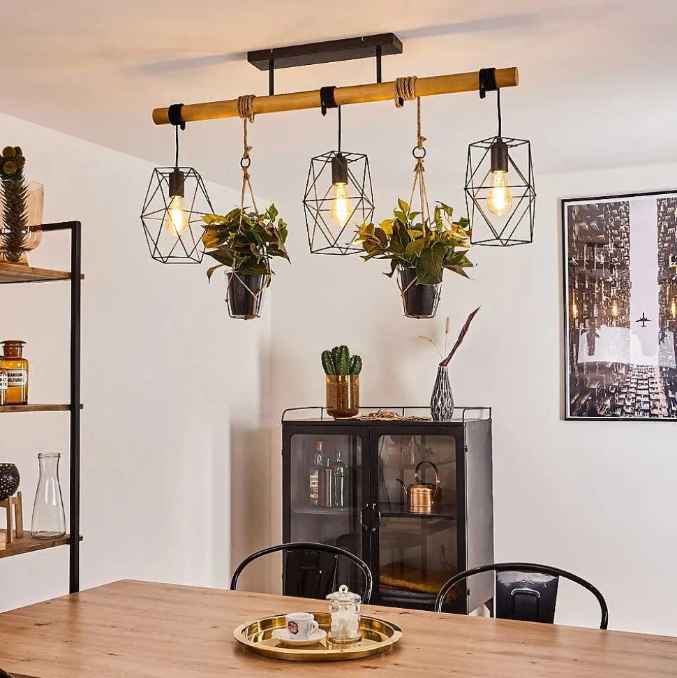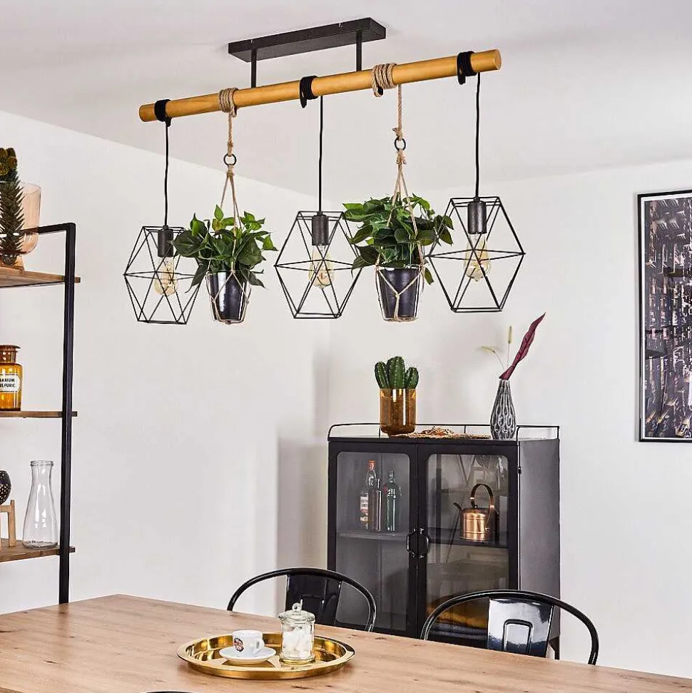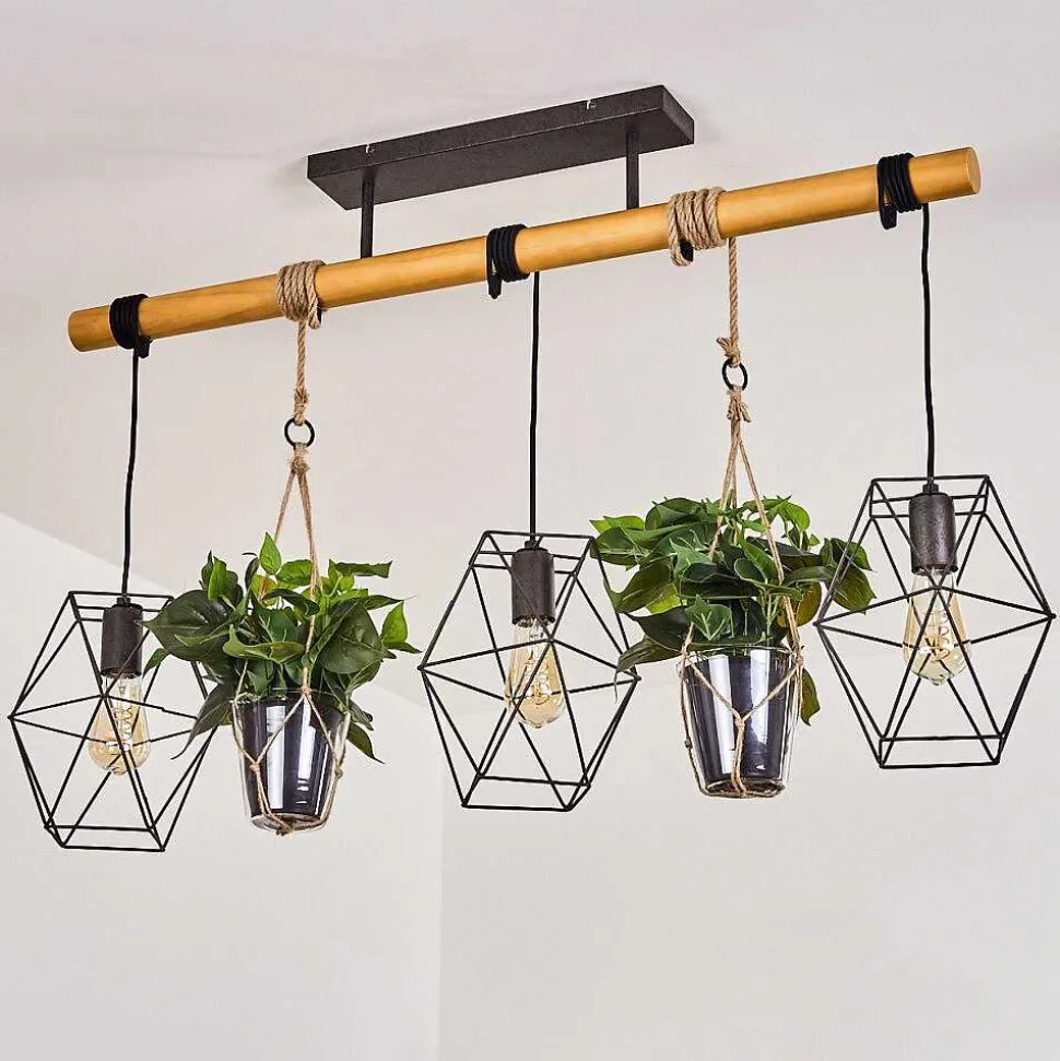 Plafonnier Salmi Led Brun, Couleur Bois, Noir, 1 Lumiere, Telecommandes