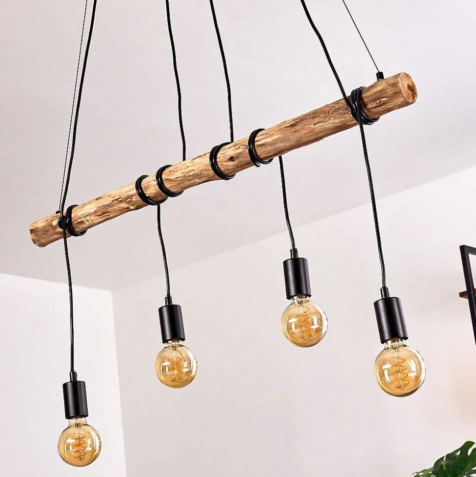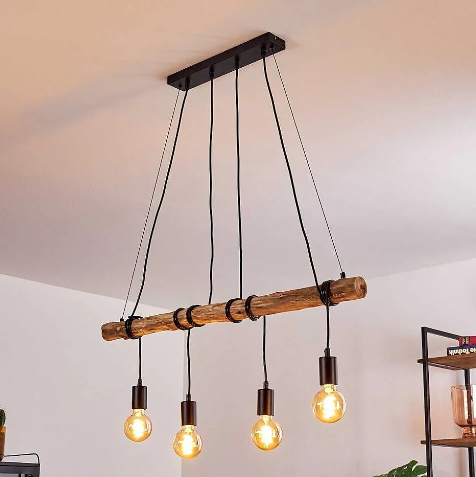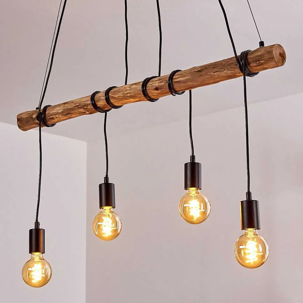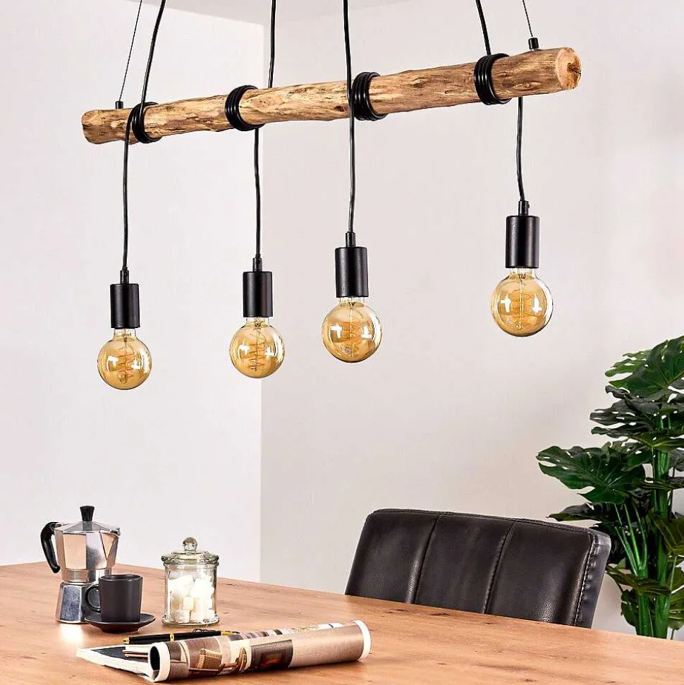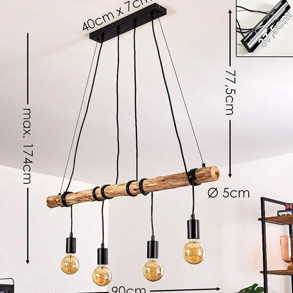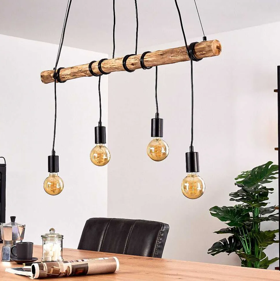 Suspension Tirana Brun, Noir, 4 Lumieres