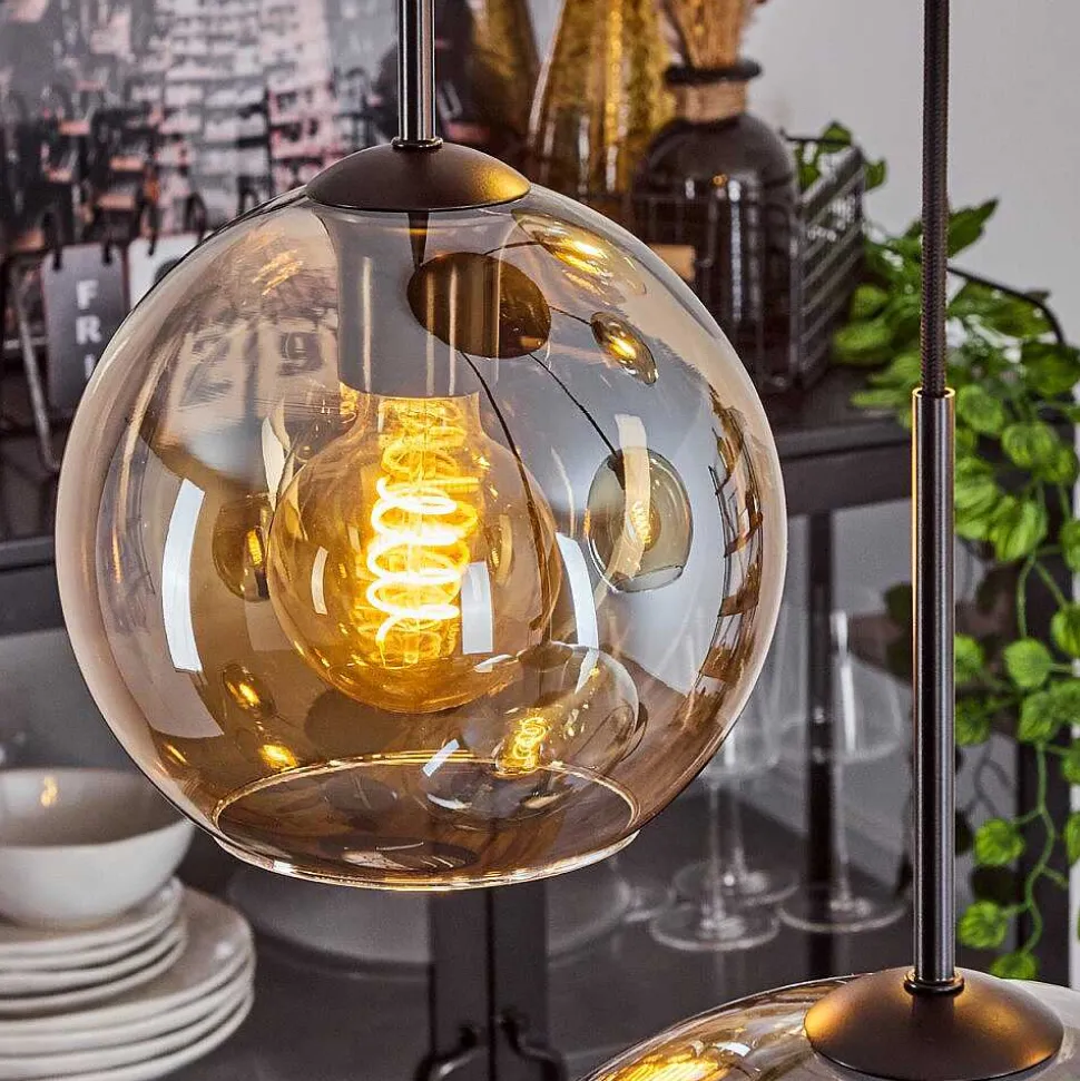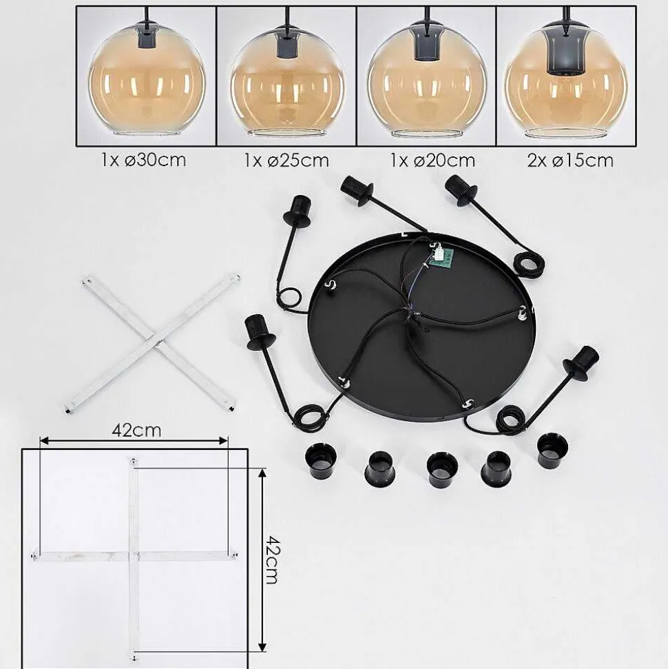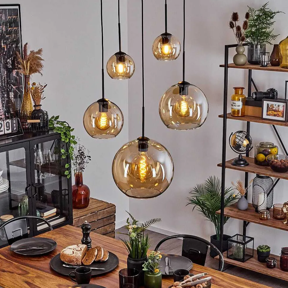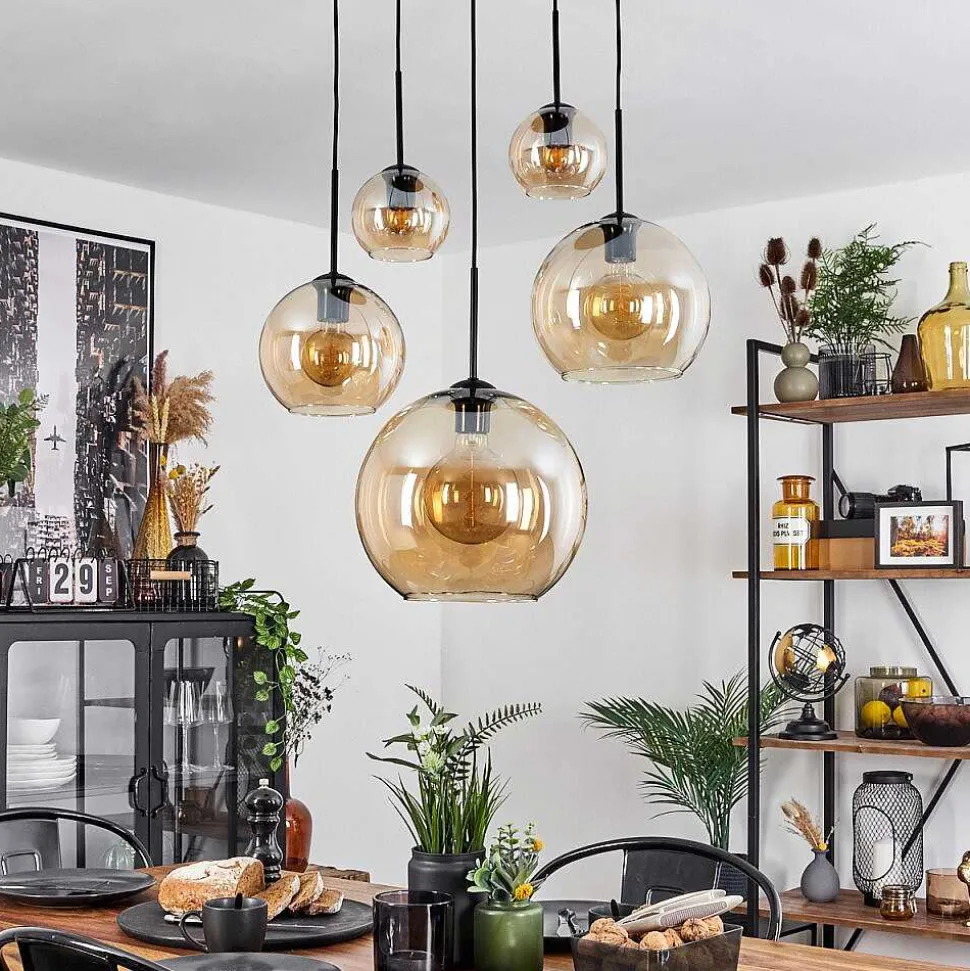 Suspension Verre 15 Cm, 20 Cm, 25 Cm, 30Cm Koyoto Ambre, 5 Lumieres