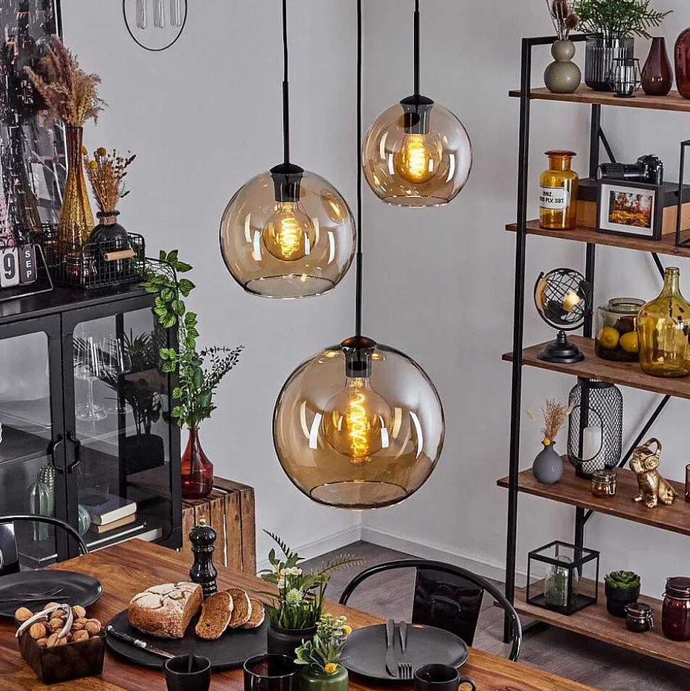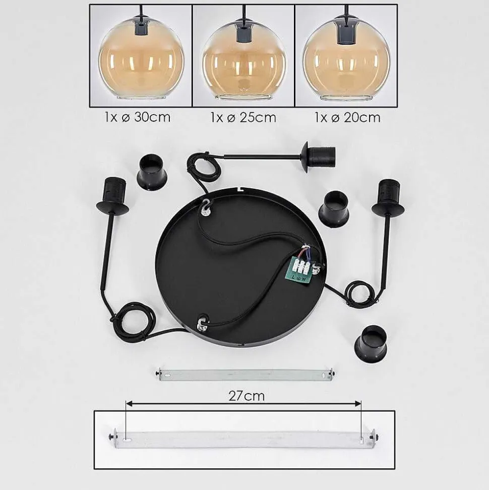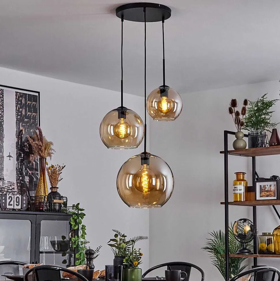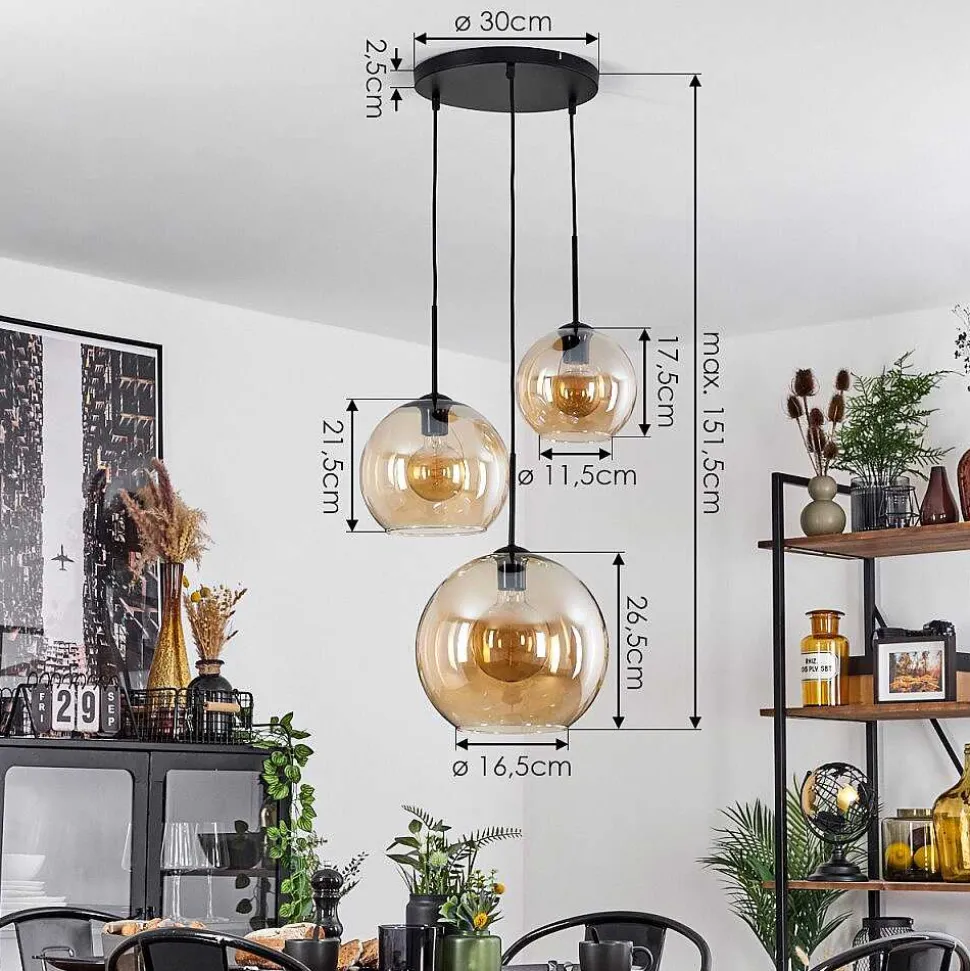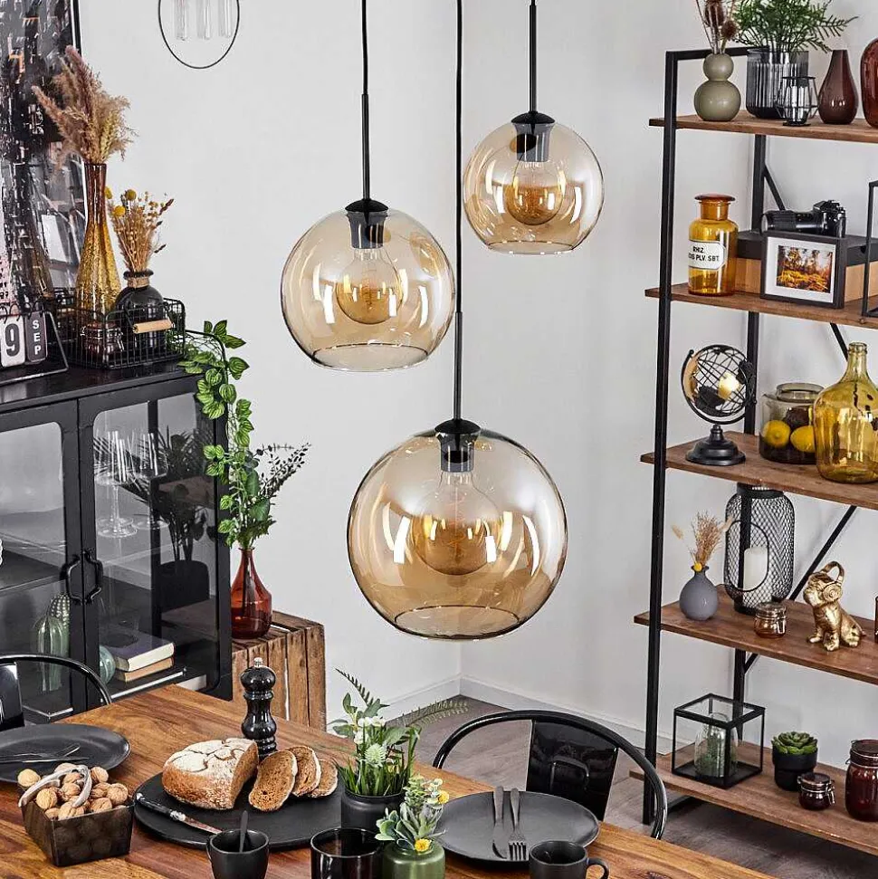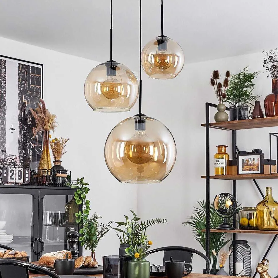 Suspension Verre 20 Cm, 25 Cm, 30Cm Koyoto Ambre, 3 Lumieres