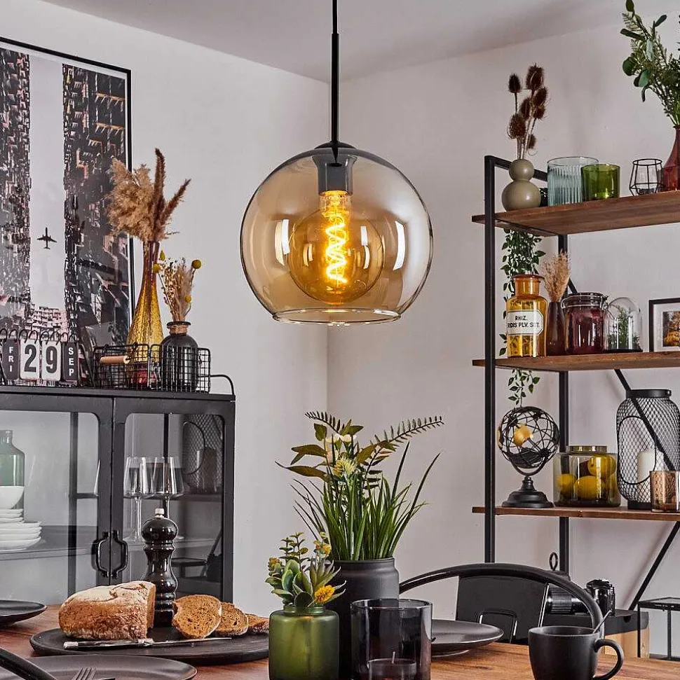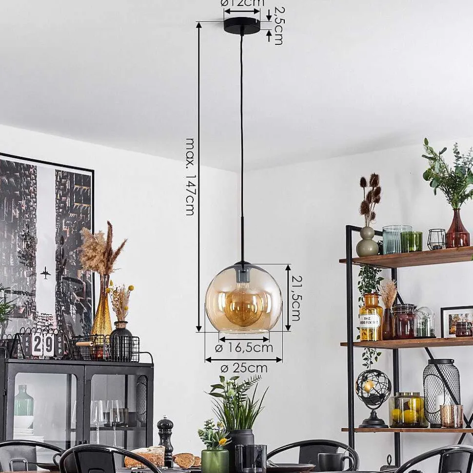 Suspension Verre 25 Cm Koyoto Ambre, 1 Lumiere