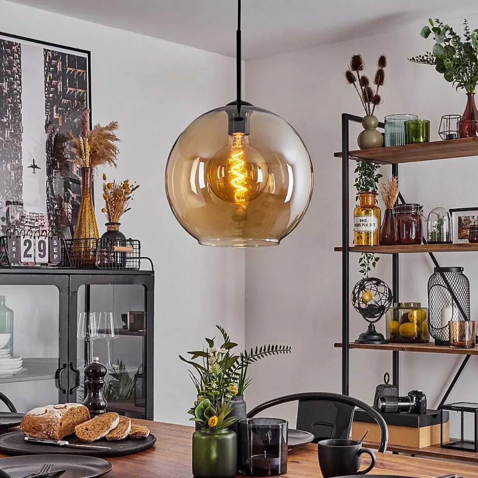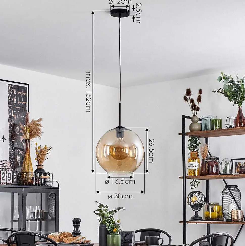 Suspension Verre 30 Cm Koyoto Ambre, 1 Lumiere