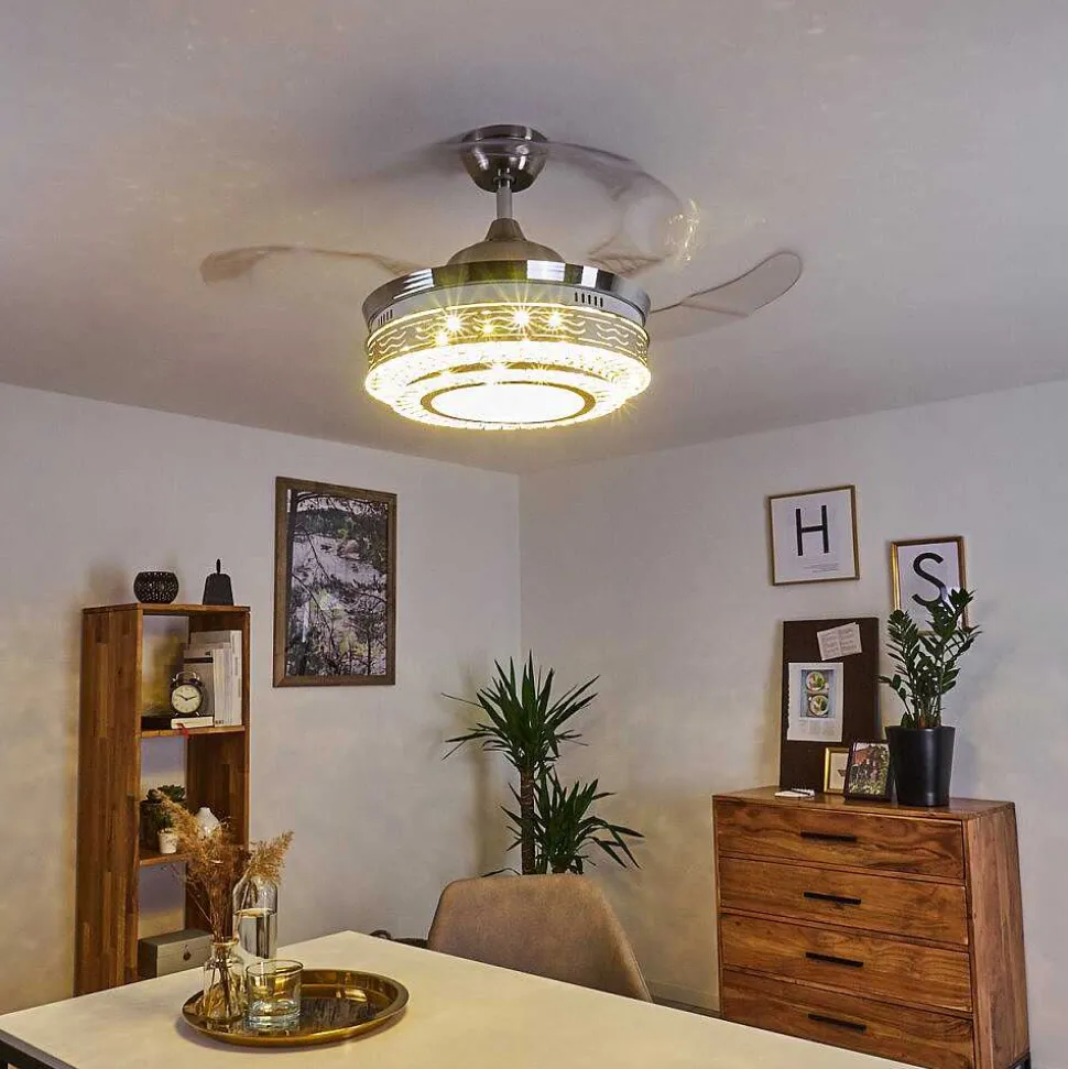 Ventilateur De Plafond Bendigo Led Nickel Mat, Transparent, 1 Lumiere