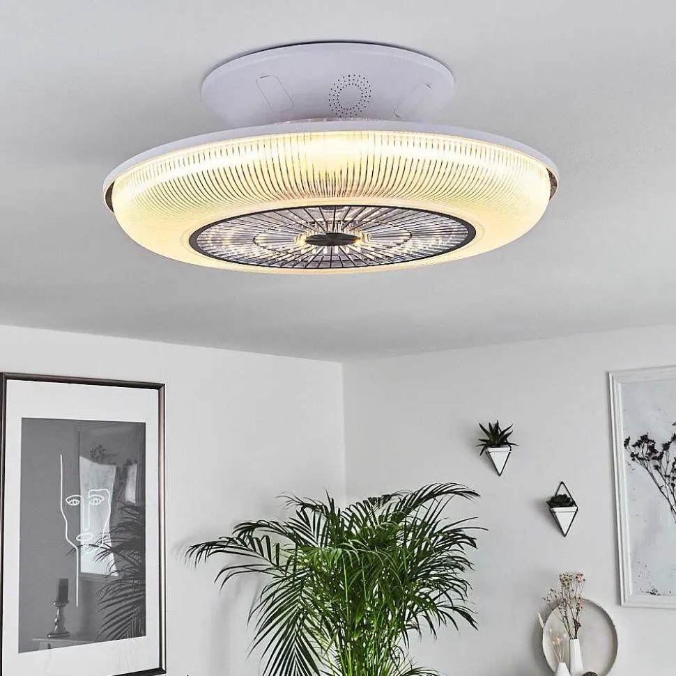Ventilateur De Plafond Riccione Led Blanc, 1 Lumiere, Telecommandes, Changeur De Couleurs