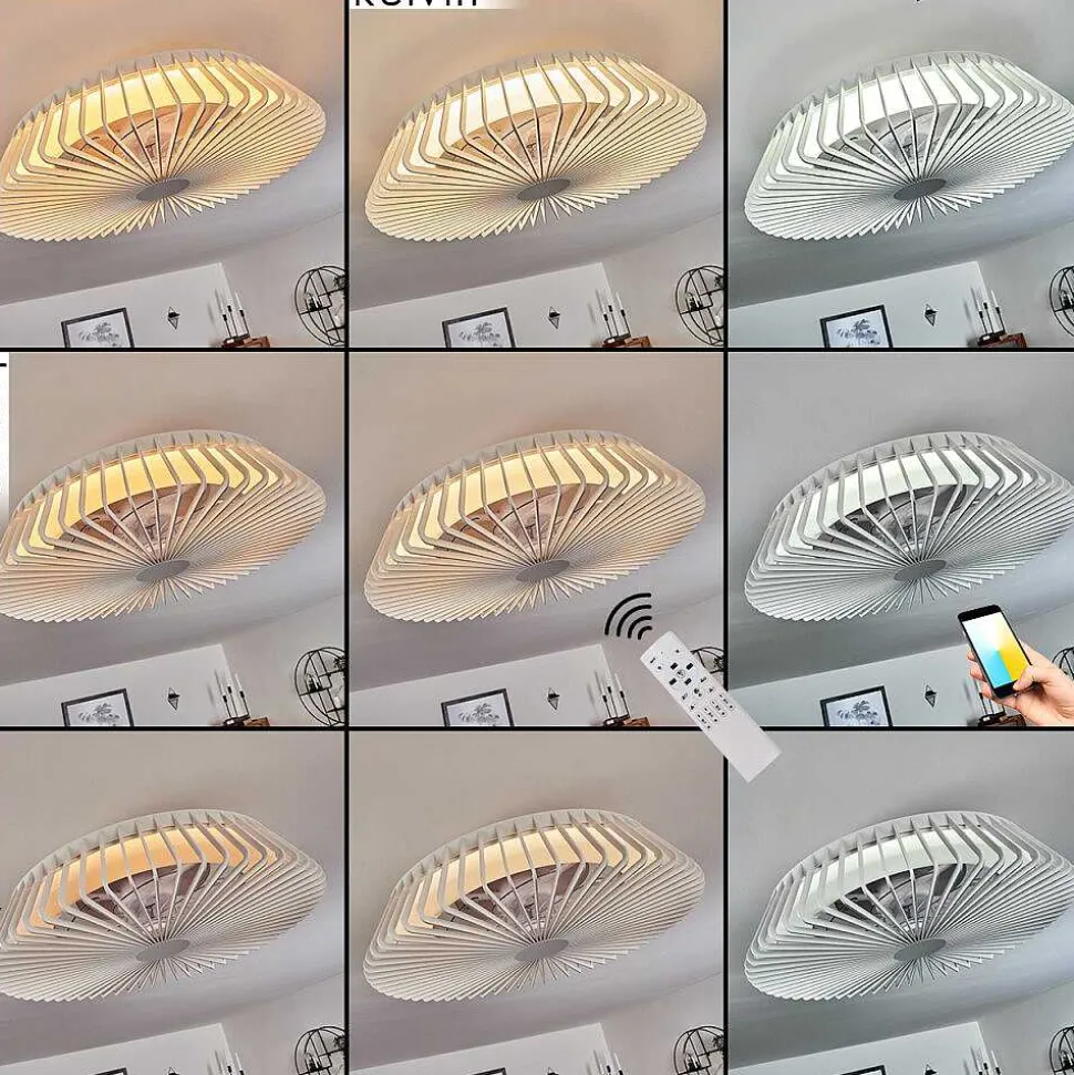 Plafonnier Salmi Led Couleur Bois, Noir, Blanc, 1 Lumiere, Telecommandes