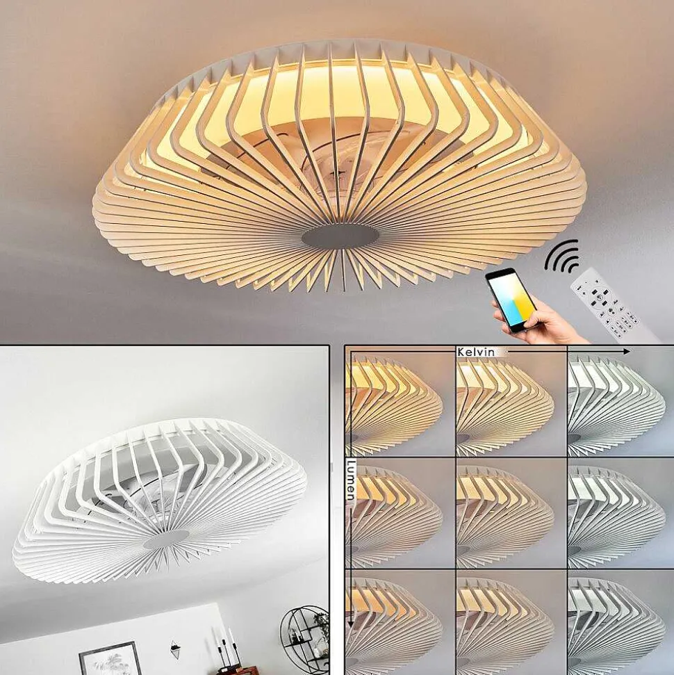 Ventilateur De Plafond Rivarotta Led Blanc, 1 Lumiere, Telecommandes