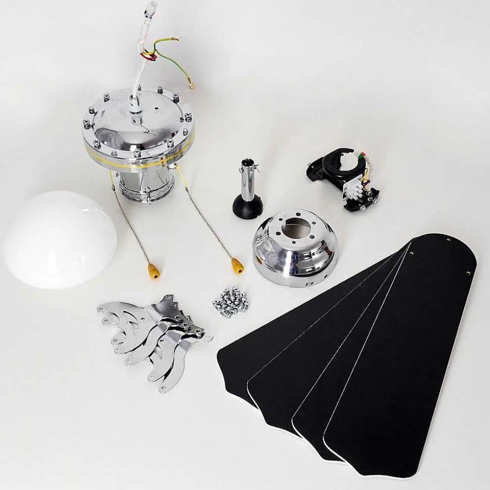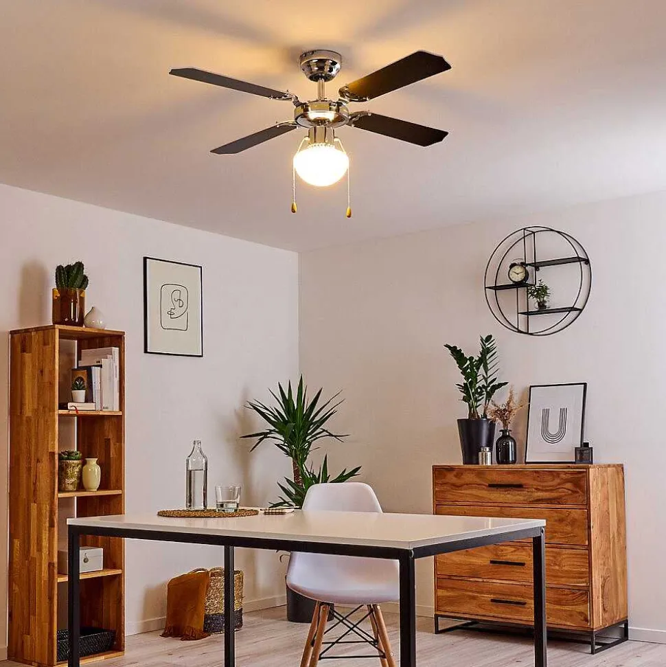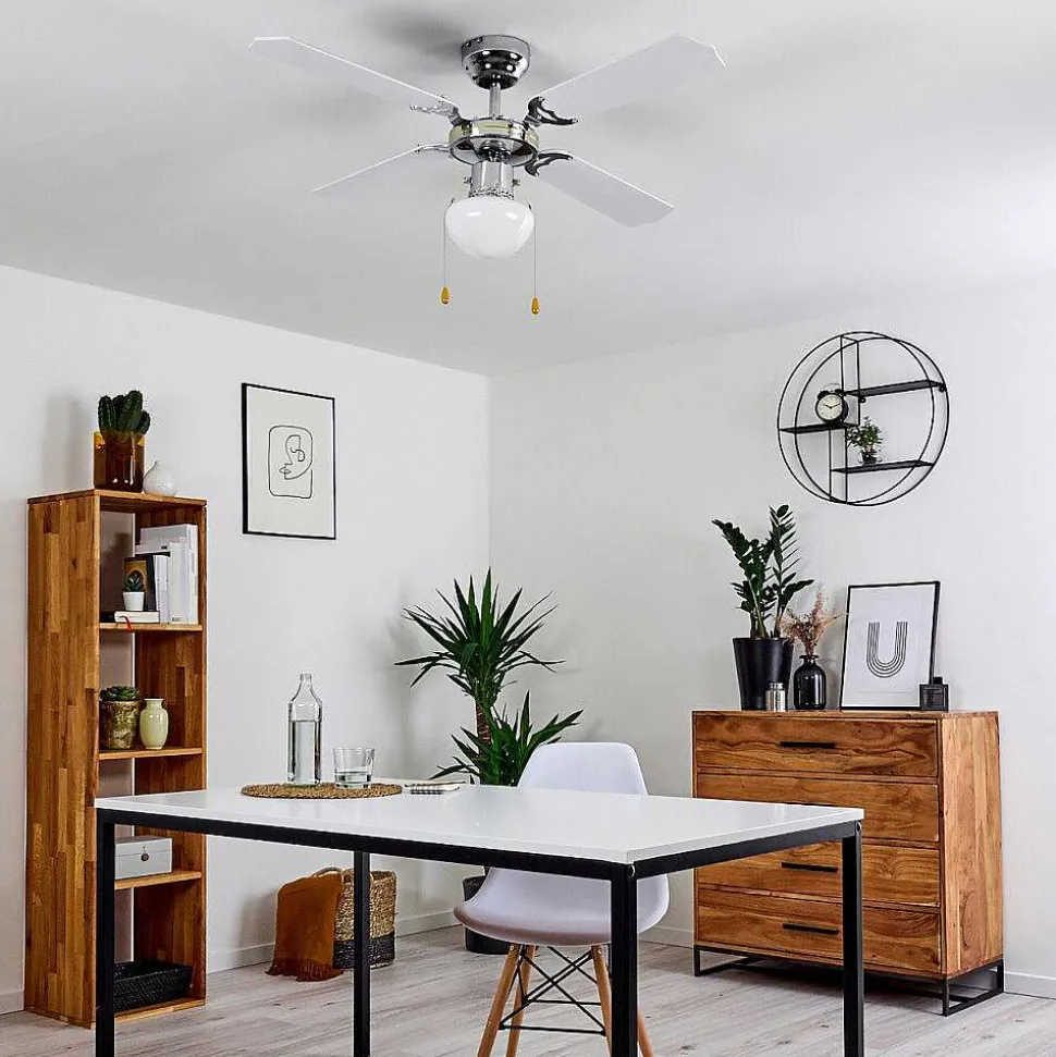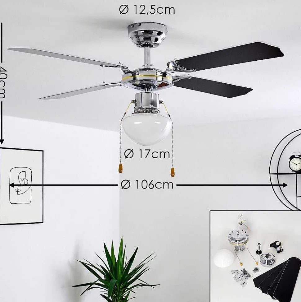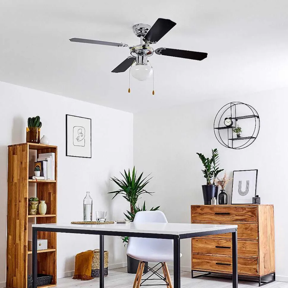 Ventilateur De Plafond Valletta Chrome, Noir, Blanc, 1 Lumiere