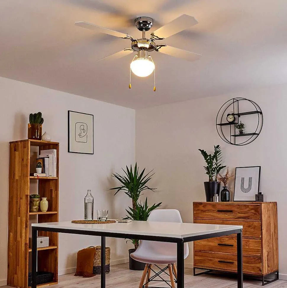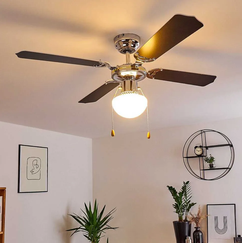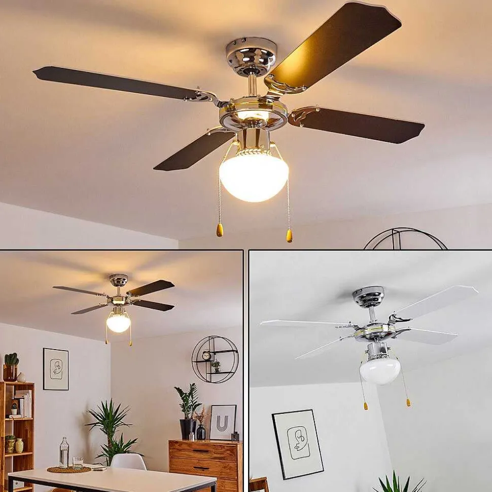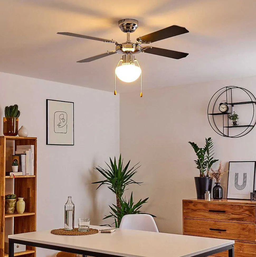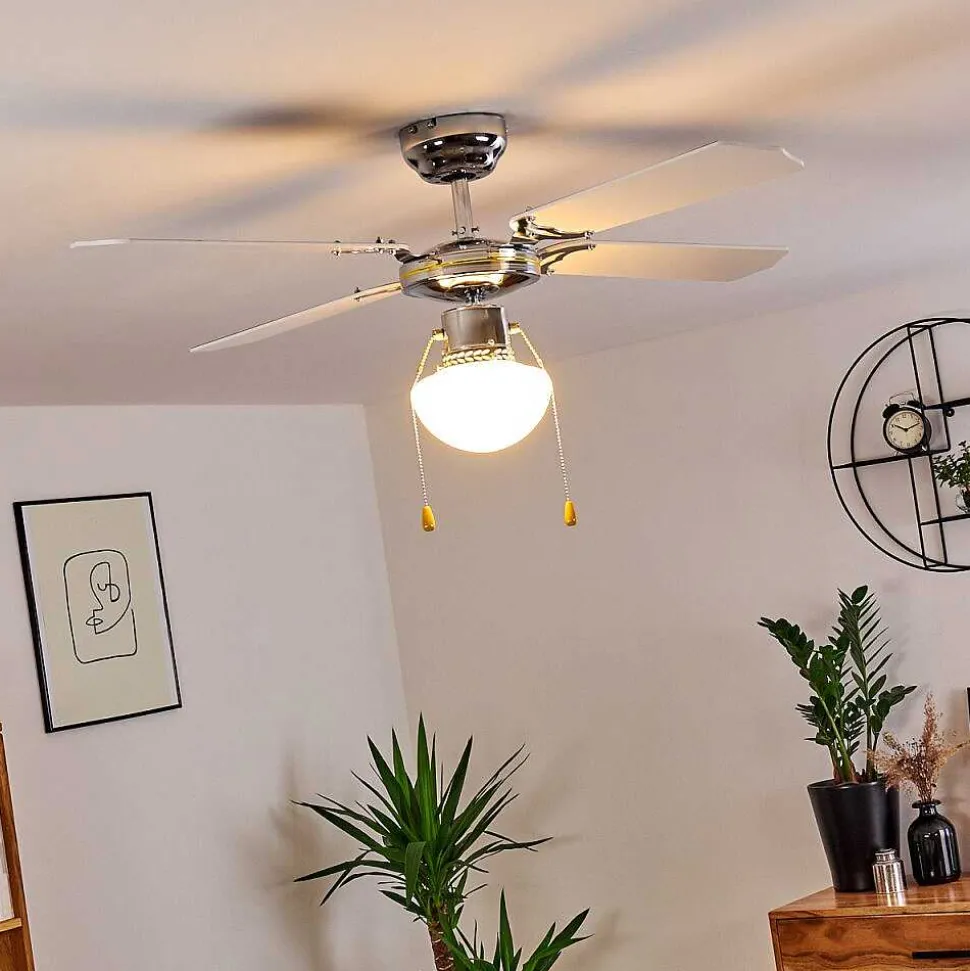Ventilateur De Plafond Valletta Chrome, Noir, Blanc, 1 Lumiere