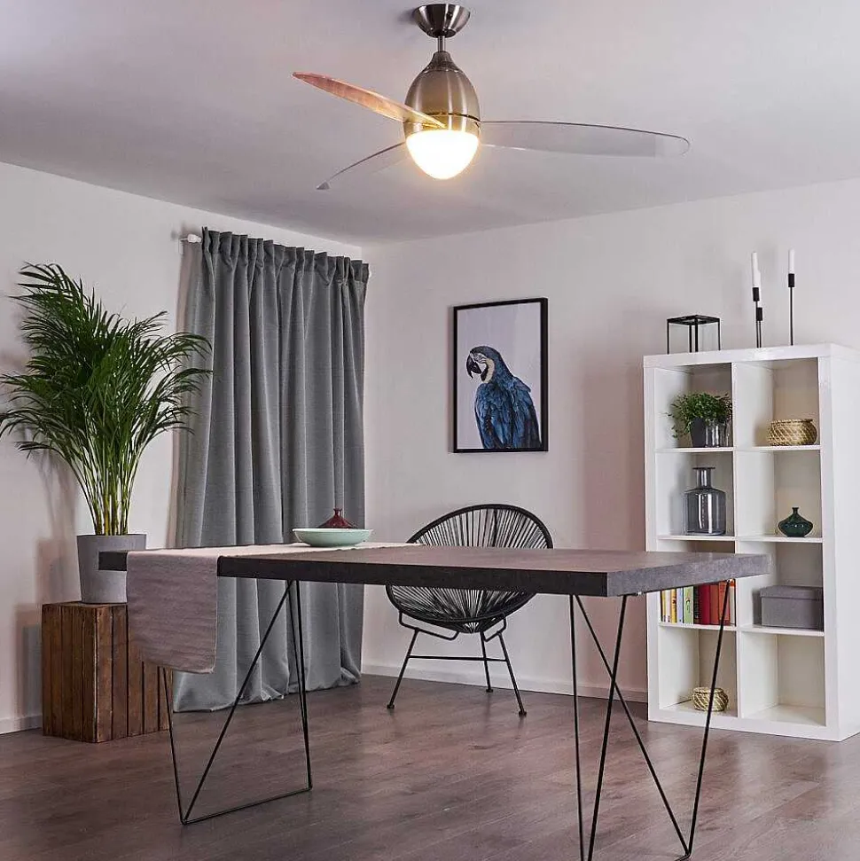 Ventilateur De Plafond Varazze Nickel Mat, Transparent, 1 Lumiere, Telecommandes